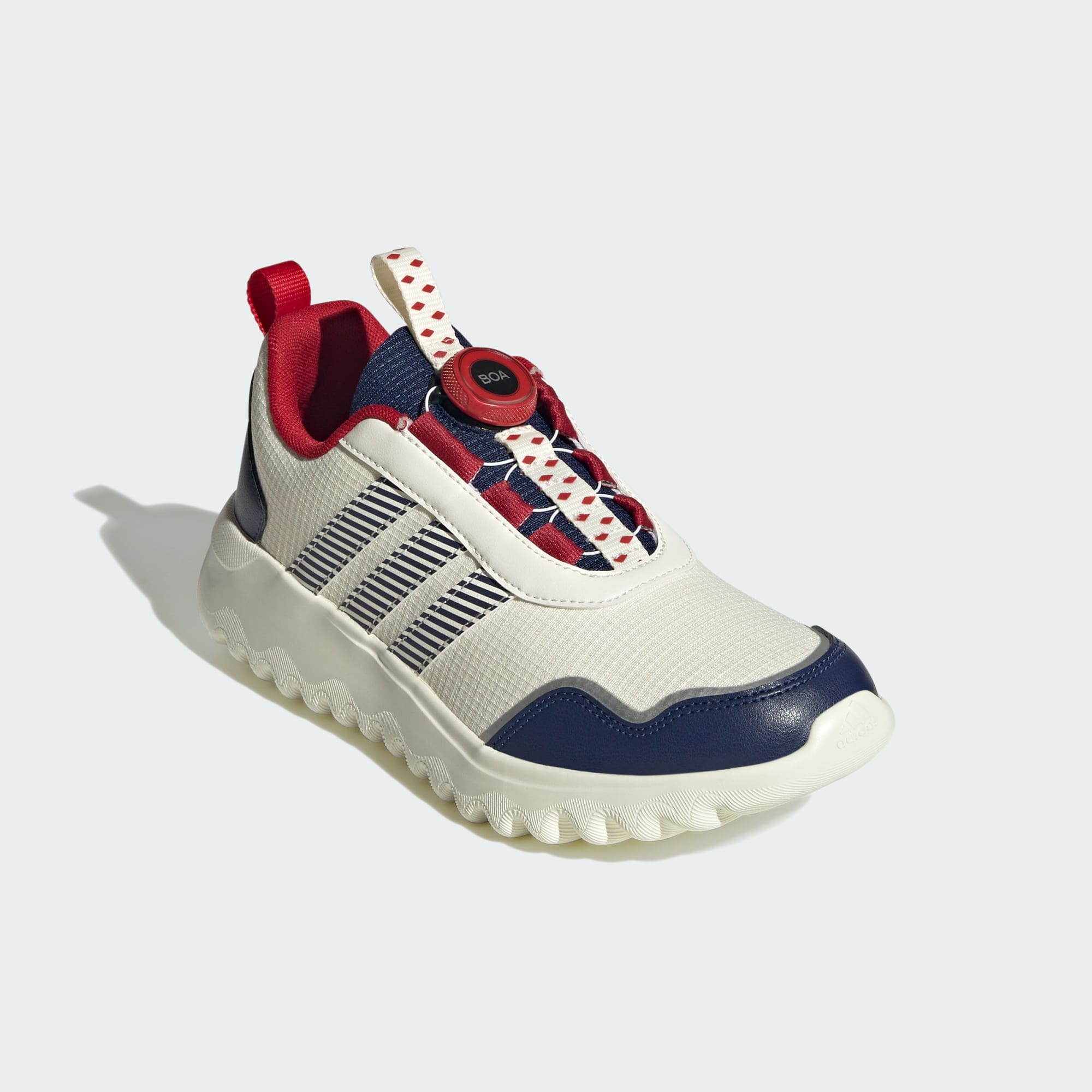 No matter what adventures the day brings, these juniors' adidas shoes will keep your feet looking and feeling great. The BOA® Fit System lets you find the perfect fit with a simple twist of the dial, while the bold design lends celebratory style. Tongue and heel pullers make them easy to pull on so you can get out the door and take on the day.