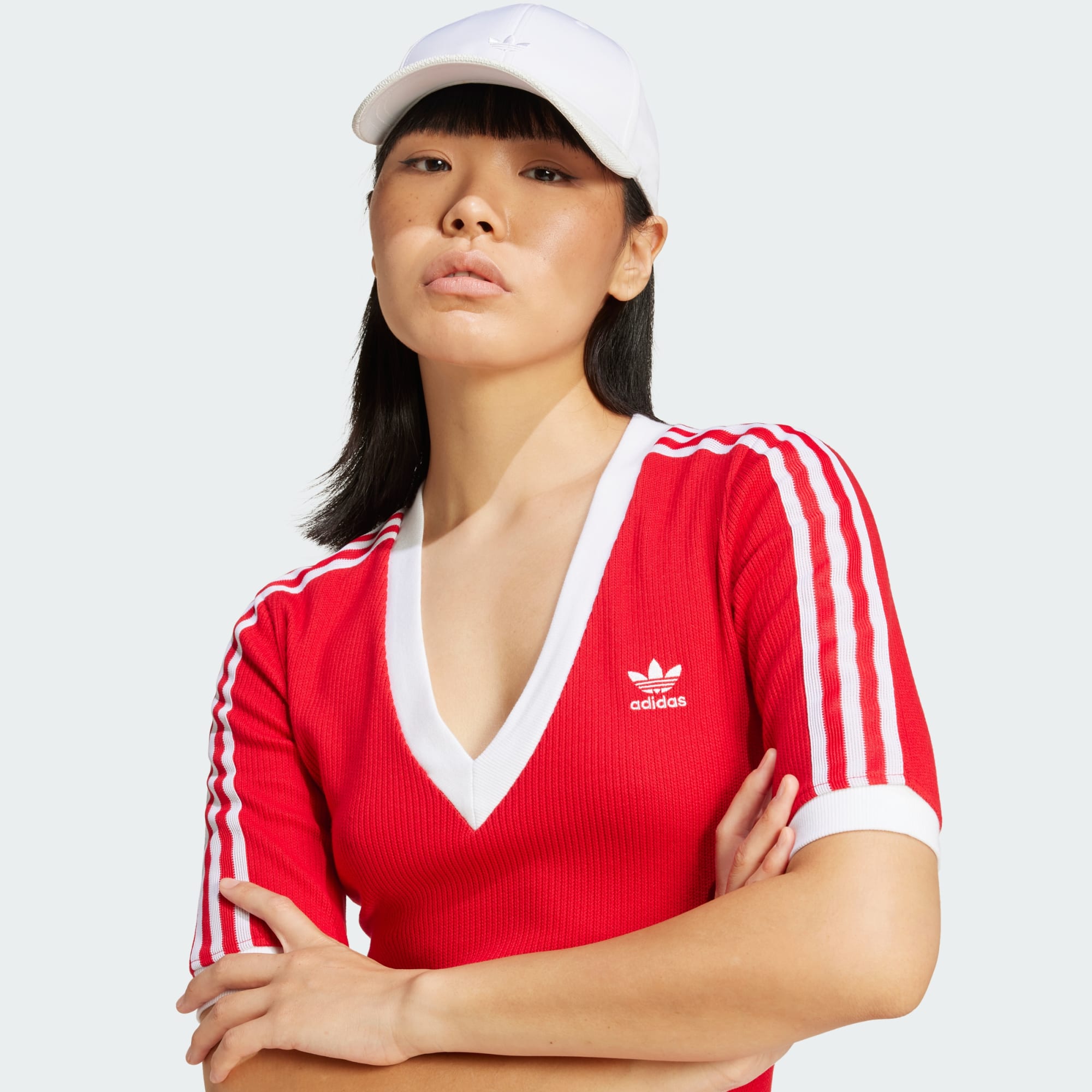 A form-fitting dress with classic adidas attitude.