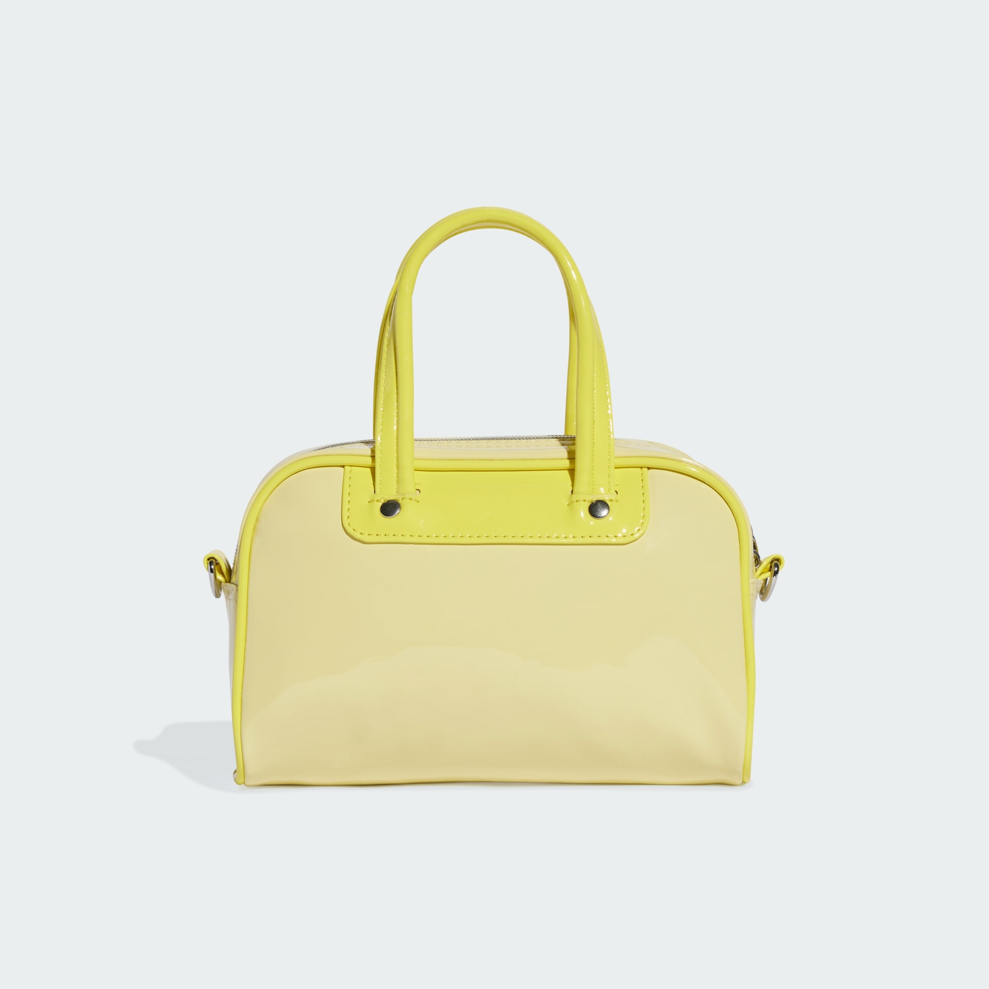 This retro-inspired adidas Adicolor mini bowling bag is anything but basic. Made from imitation leather with a patent sheen, it holds all your essentials. Metal accents and piping give it a retro vibe. Sling it over your shoulder or carry it by the handles. Because options.