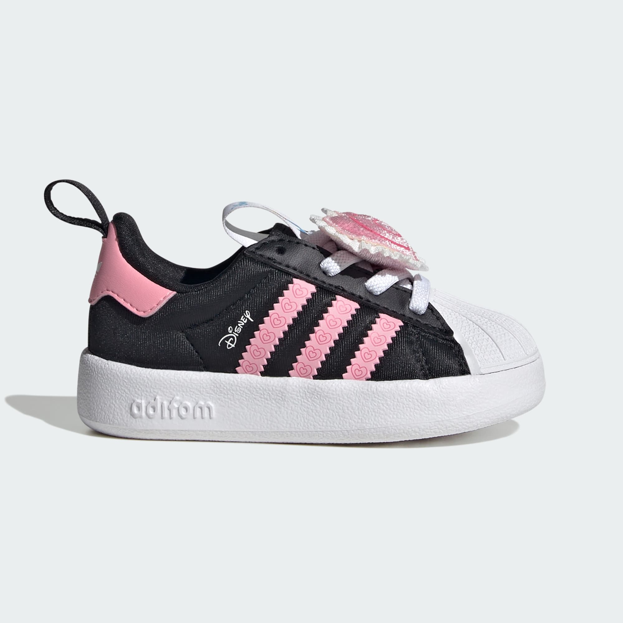 The adidas Disney Adifom Superstar 360 Shoes are designed for little adventurers who never stop moving. Inspired by one of your child’s favourite characters, these shoes are a playful addition to your little one's wardrobe. With a stretchable synthetic upper featuring a vibrant print, these shoes are as stylish as they are functional. The hook-and-loop strap closure with elastic gore enables easy slip-on and wear, making them great for independent little ones. The soft one-piece EVA Adifom outsole provides comfort and flexibility, allowing kids to run, jump, and explore with ease. adidas branding is proudly displayed with the iconic 3-Stripes, trefoil branding on the tongue webbing and heel tab and Adifom lettering on the outsole. These shoes are all about supporting your child's active energy with comfort and durability.