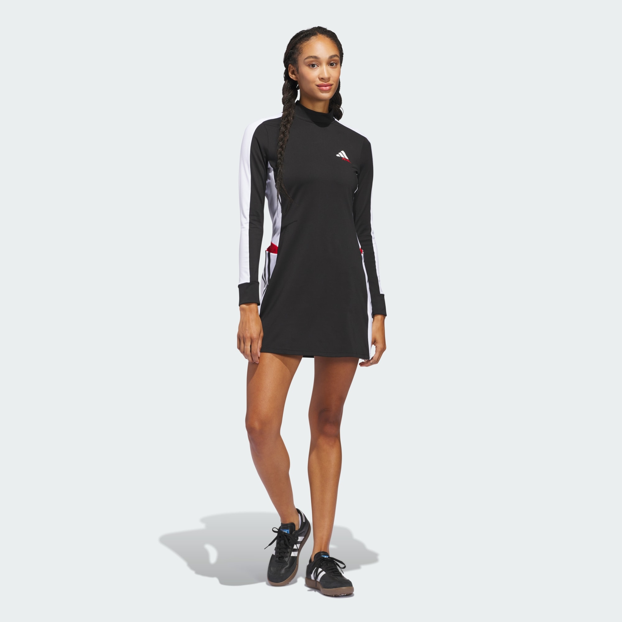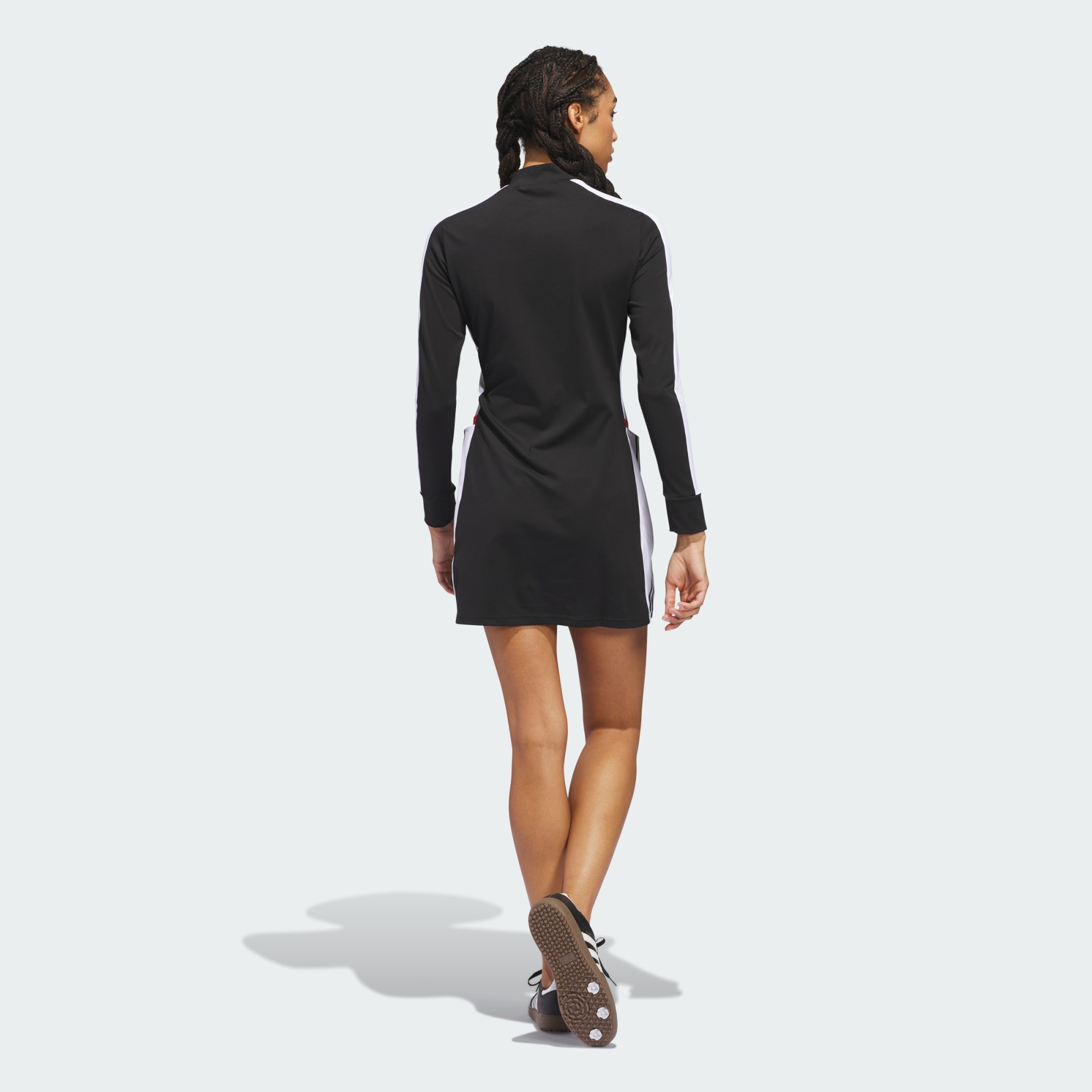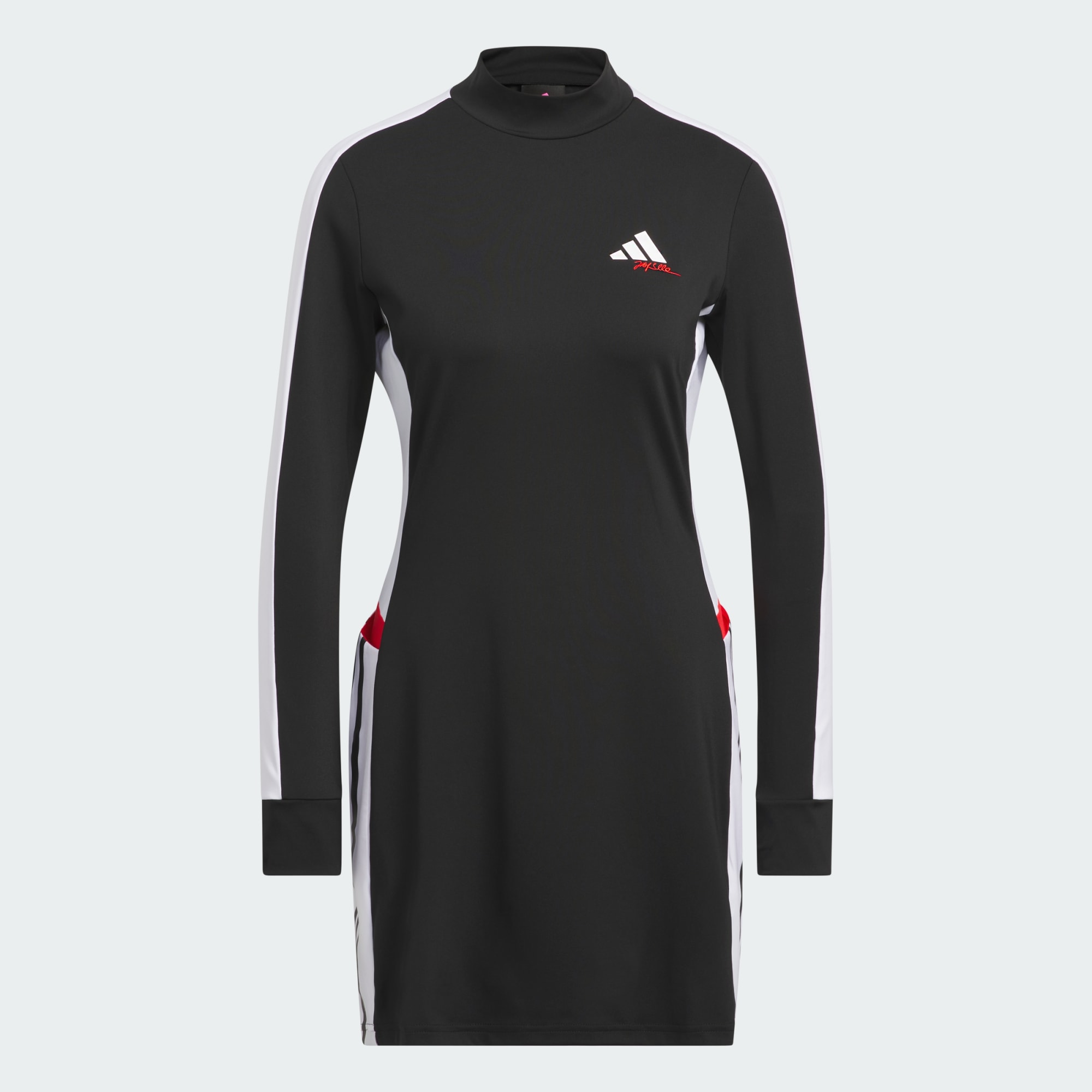 adidas performance meets designer style in this golf dress. Created in collaboration with Johan Lindeberg under his new Jay3lle brand, it blends game-ready performance features with a sleek look that makes it a winner on and off the course. Four-way stretch fabric lets you move effortlessly as you swing, and the mesh-lined waistband offers all-day comfort. With a mock-neck design and flattering fit, it makes a statement wherever you go. This product is made with at least 70% recycled materials. By reusing materials that have already been created, we help to reduce waste and our reliance on finite resources and reduce the footprint of the products we make.