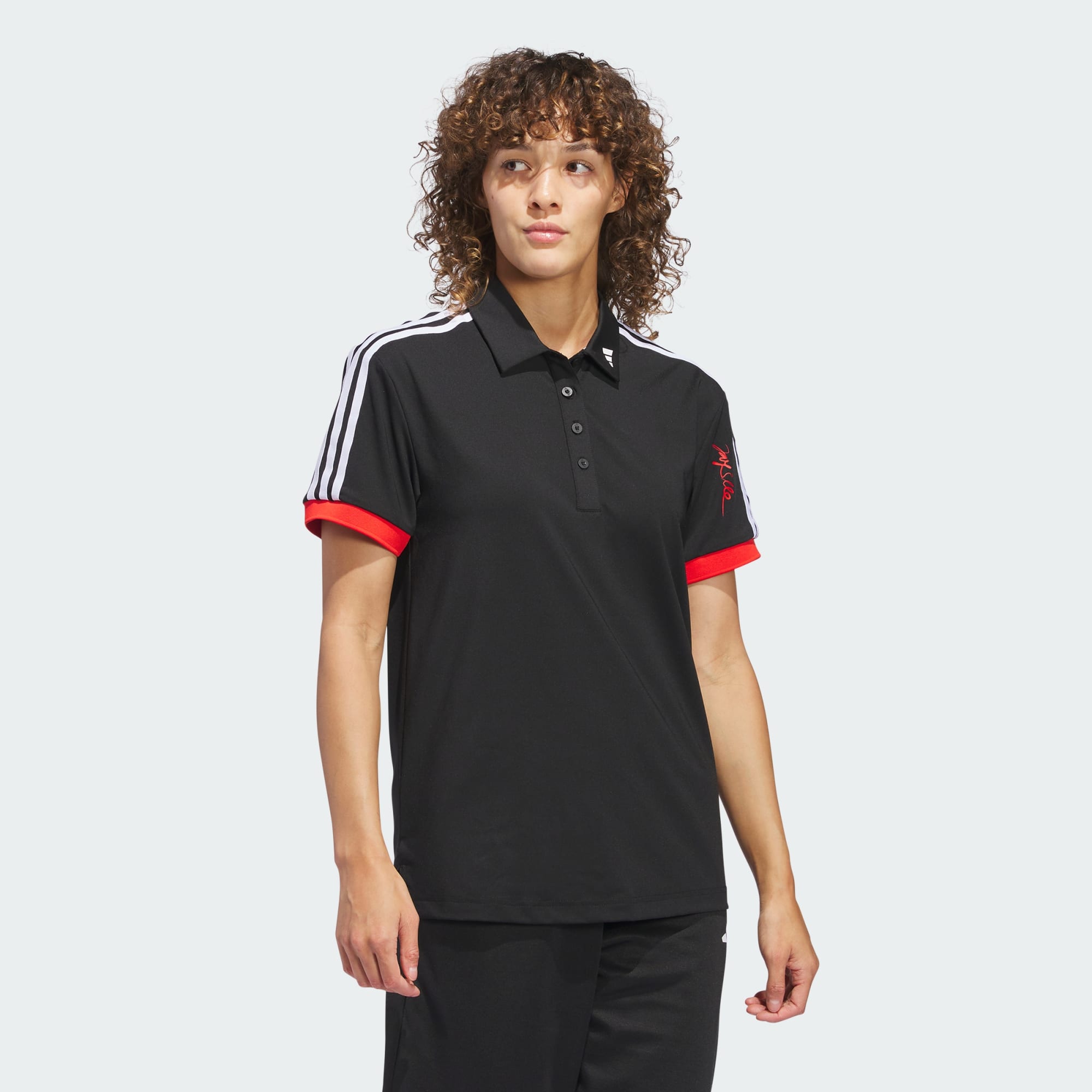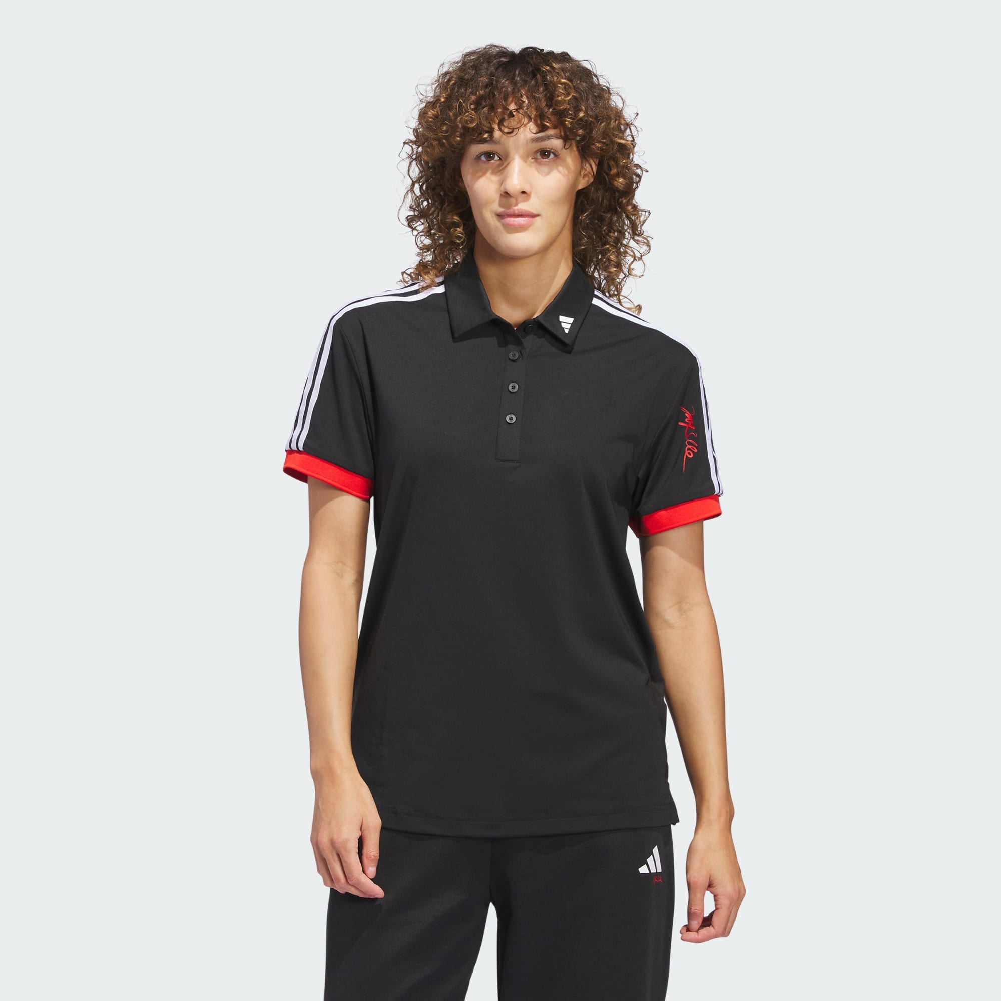 An adidas x Jay3lle golf polo shirt made in part with recycled materials.