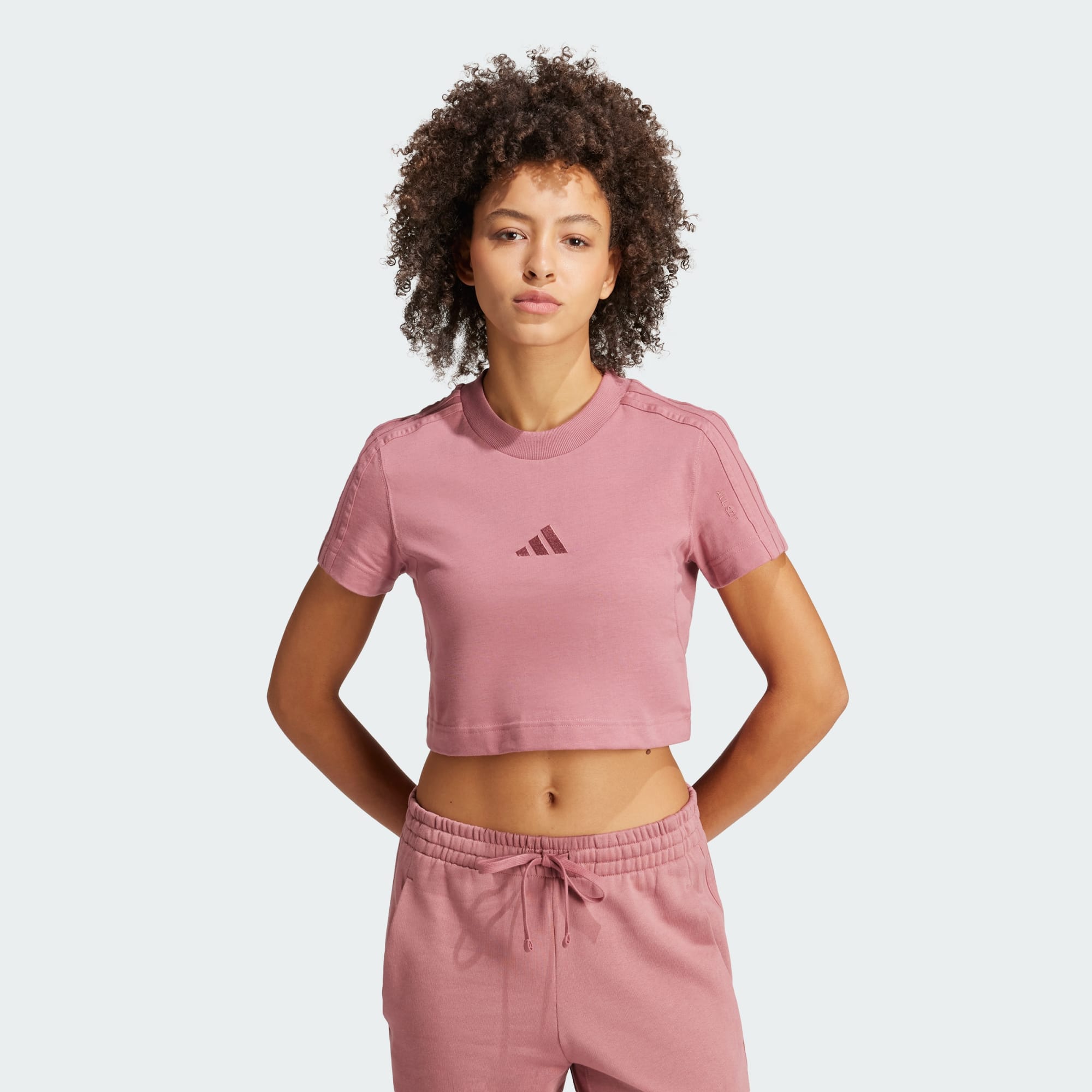 Whether you're relaxing at home or choosing an outfit for your post-workout look, this slim-fit adidas tee is ready for it all. Soft single jersey cotton provides lightweight comfort, while the cropped length and underarm cutouts lend on-trend style. Tonal 3-Stripes down the sleeves give a nod to athletic inspiration. Casual yet sporty, it pairs with everything from joggers to maxi skirts.