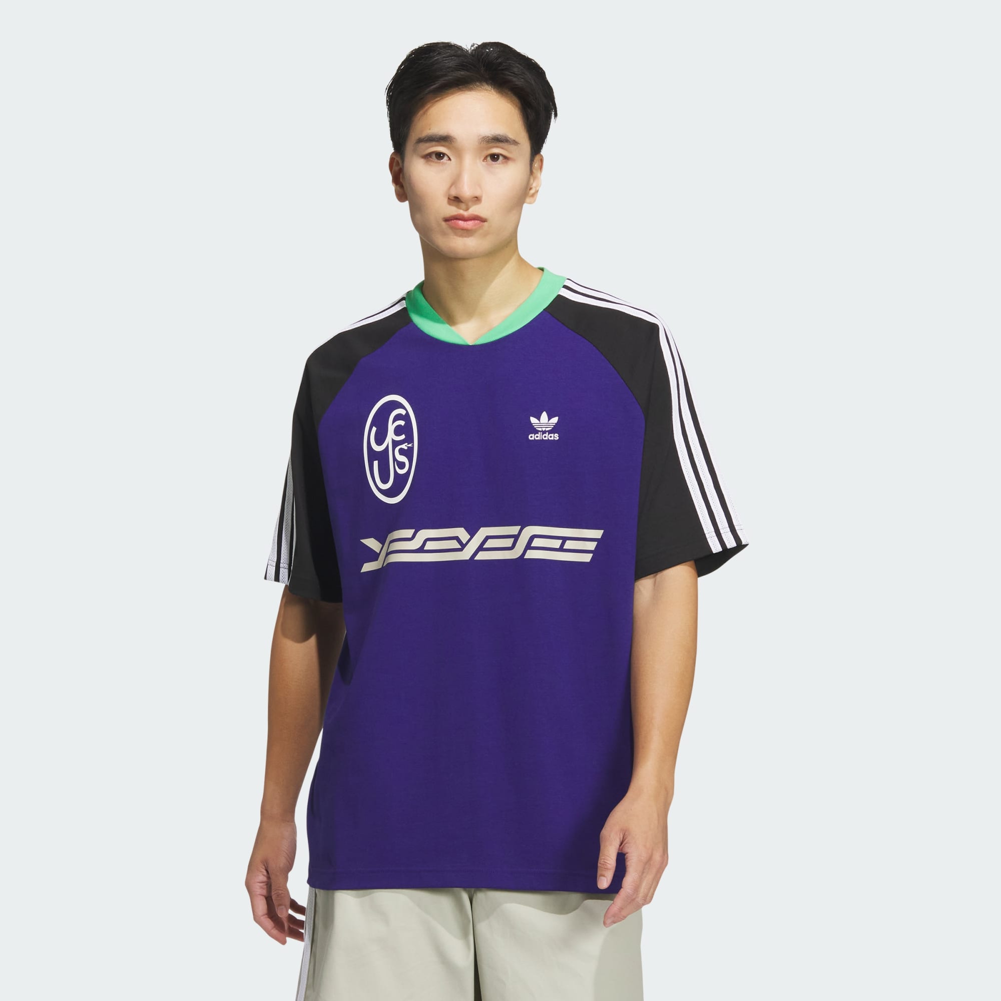 A casual look inspired by sports and ready for the scene. This adidas jersey lets you rep a look you love with a loose, laid-back feel. The loose shape and cotton fabric keep you comfortable in relax mode, whether you're out and about or kicking back at home. Pair it with fleece, jeans or joggers to set your own style tone.