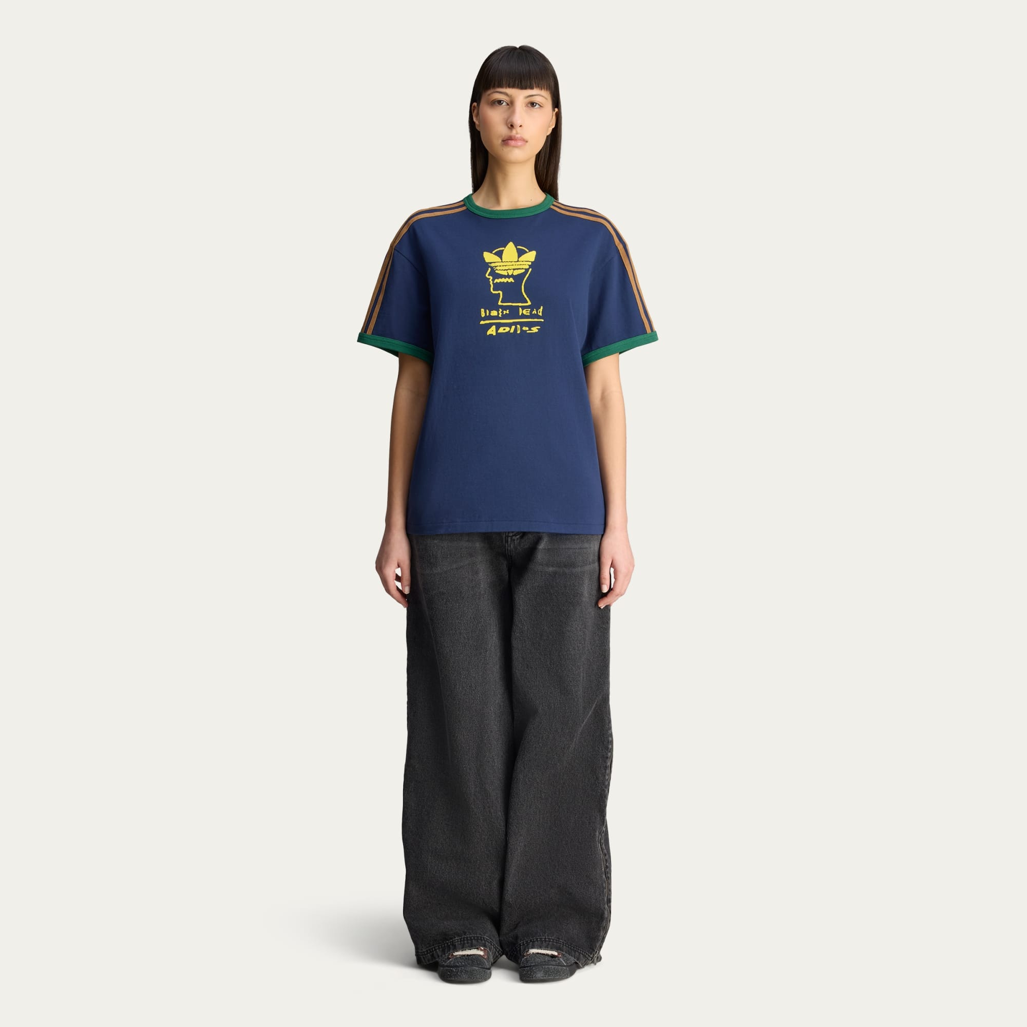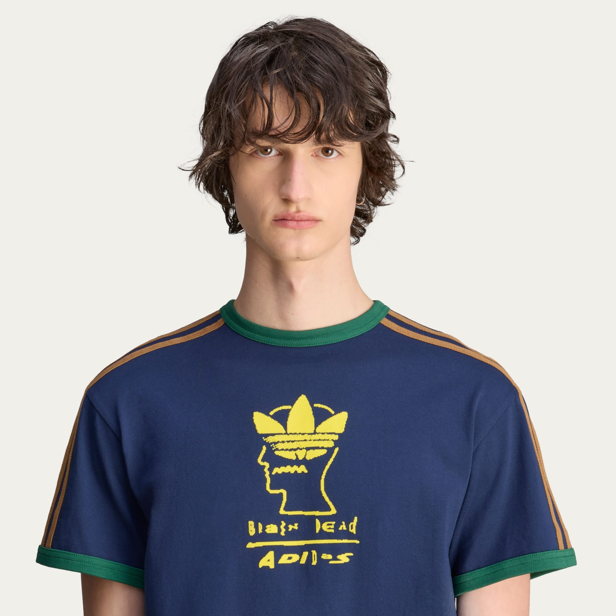 The mark of our collaboration with Brain Dead is on full display on this adidas t-shirt. Right on the front, a distinctive graphic plays on our worlds of sport and street merging. It's crafted from soft cotton in a regular fit.