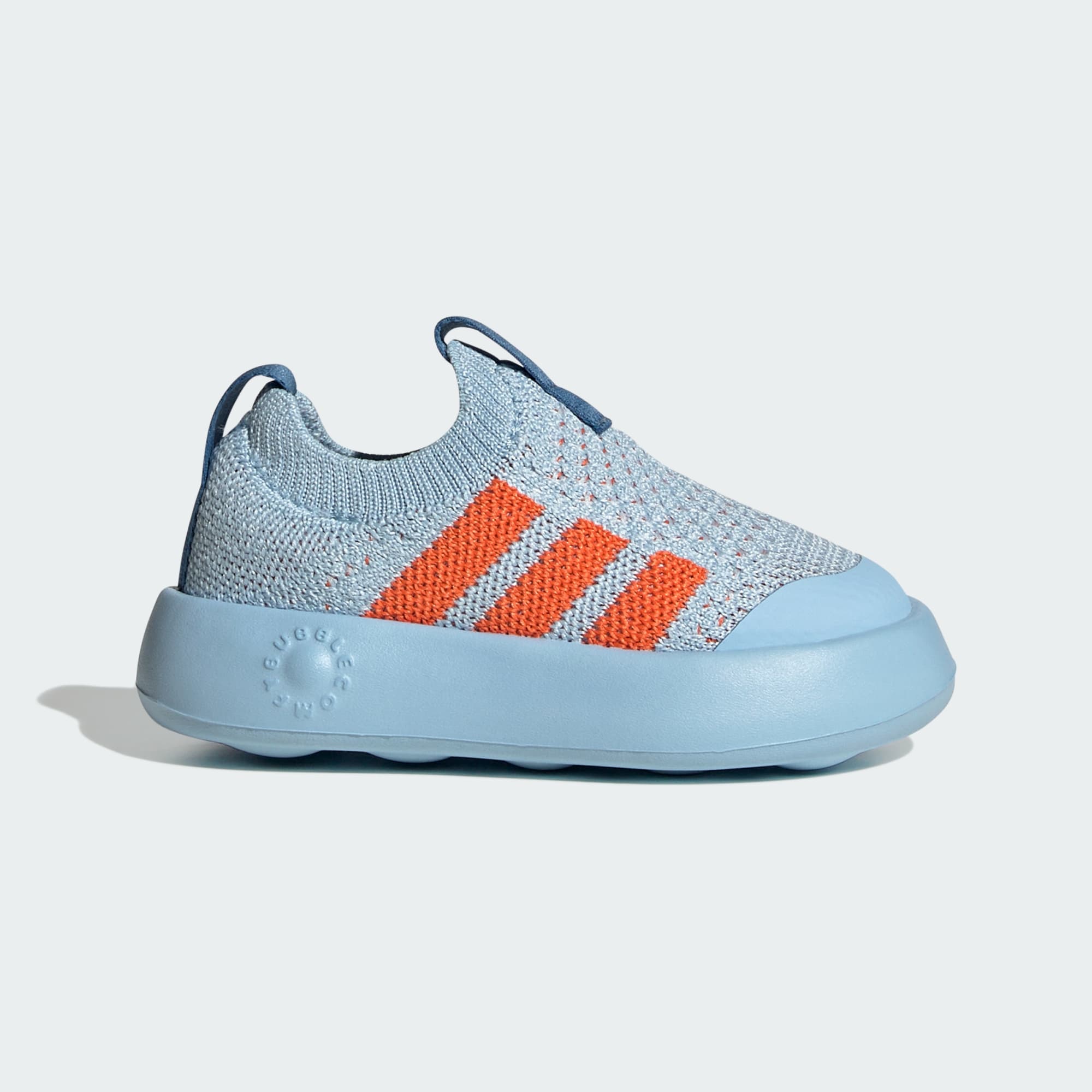 These infants' shoes from adidas put comfort first. A super lightweight, breathable knit upper is paired with the softest ever outsole. The Bubblecomfy sole is made with one piece of EVA that's flexible and ultralight.