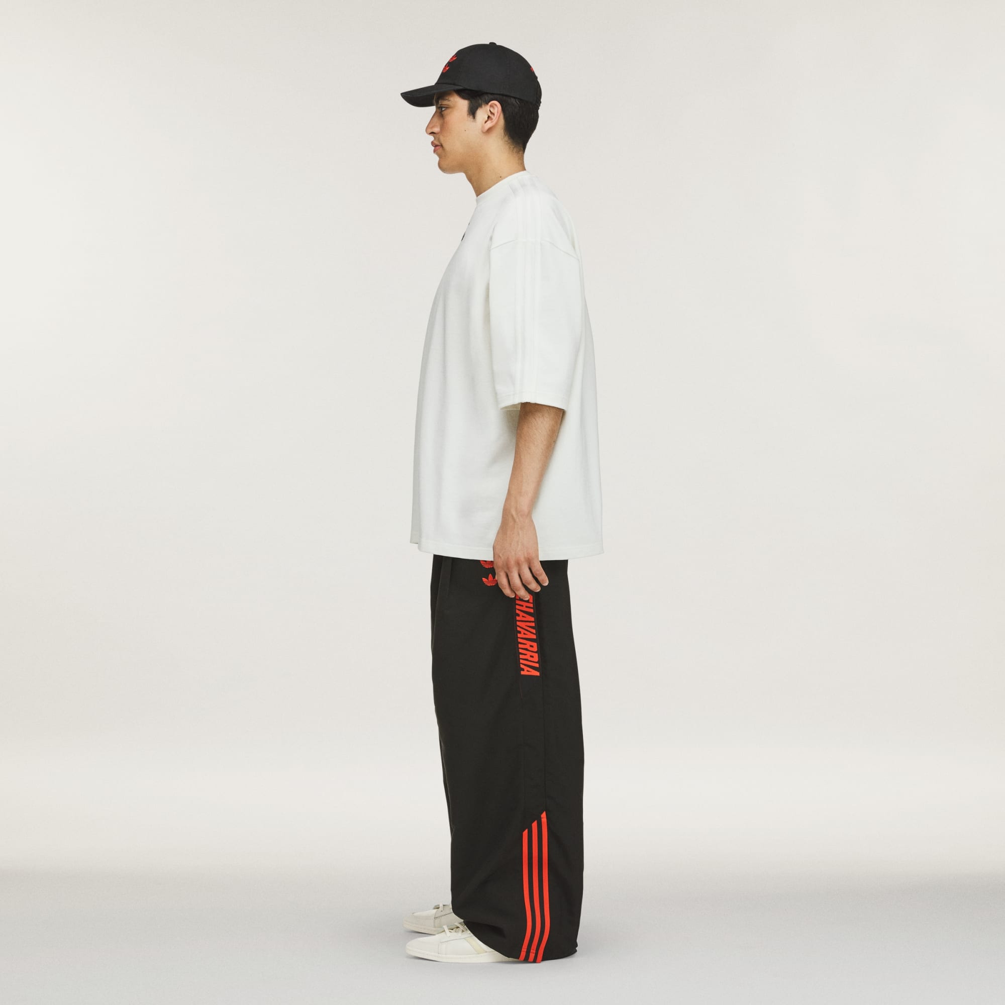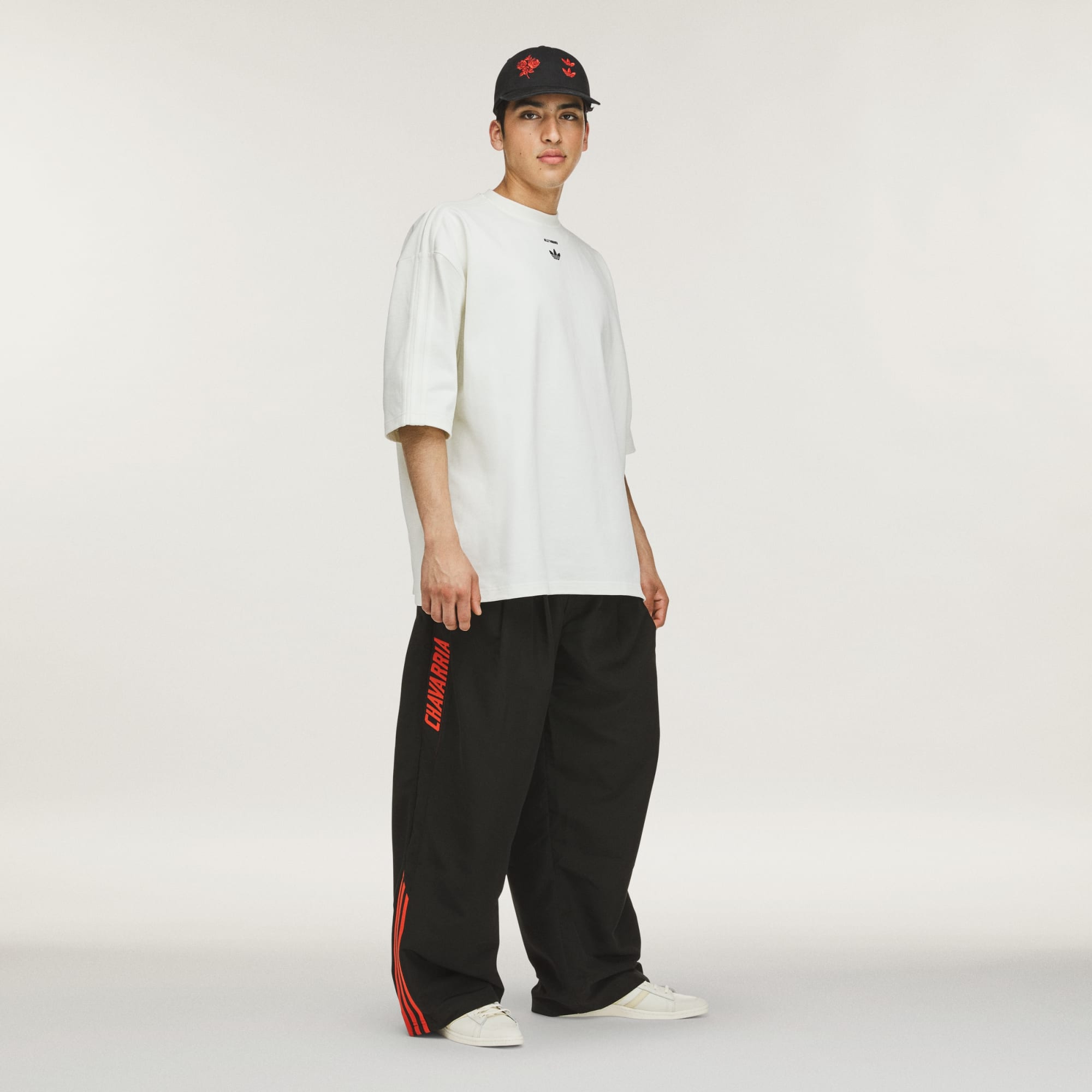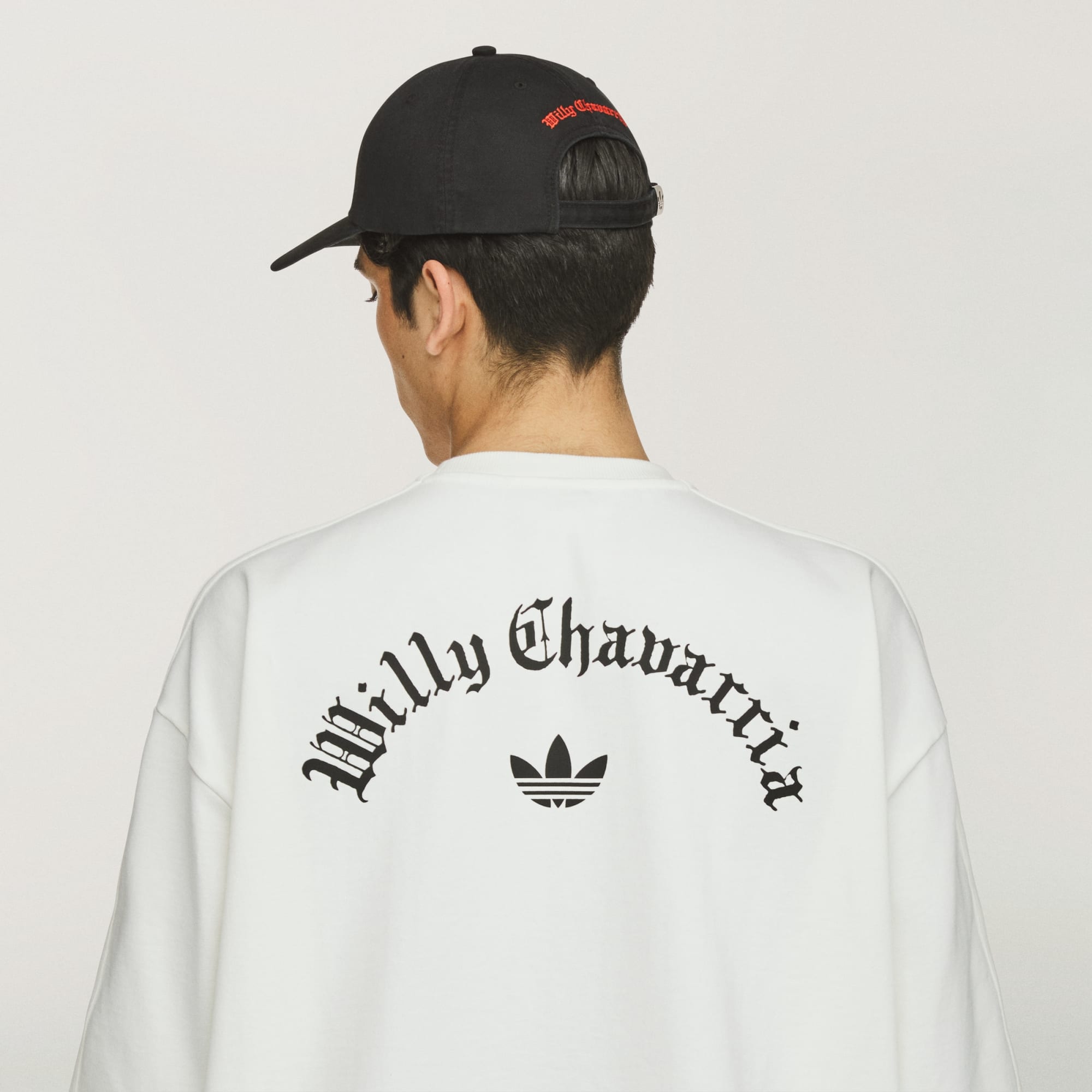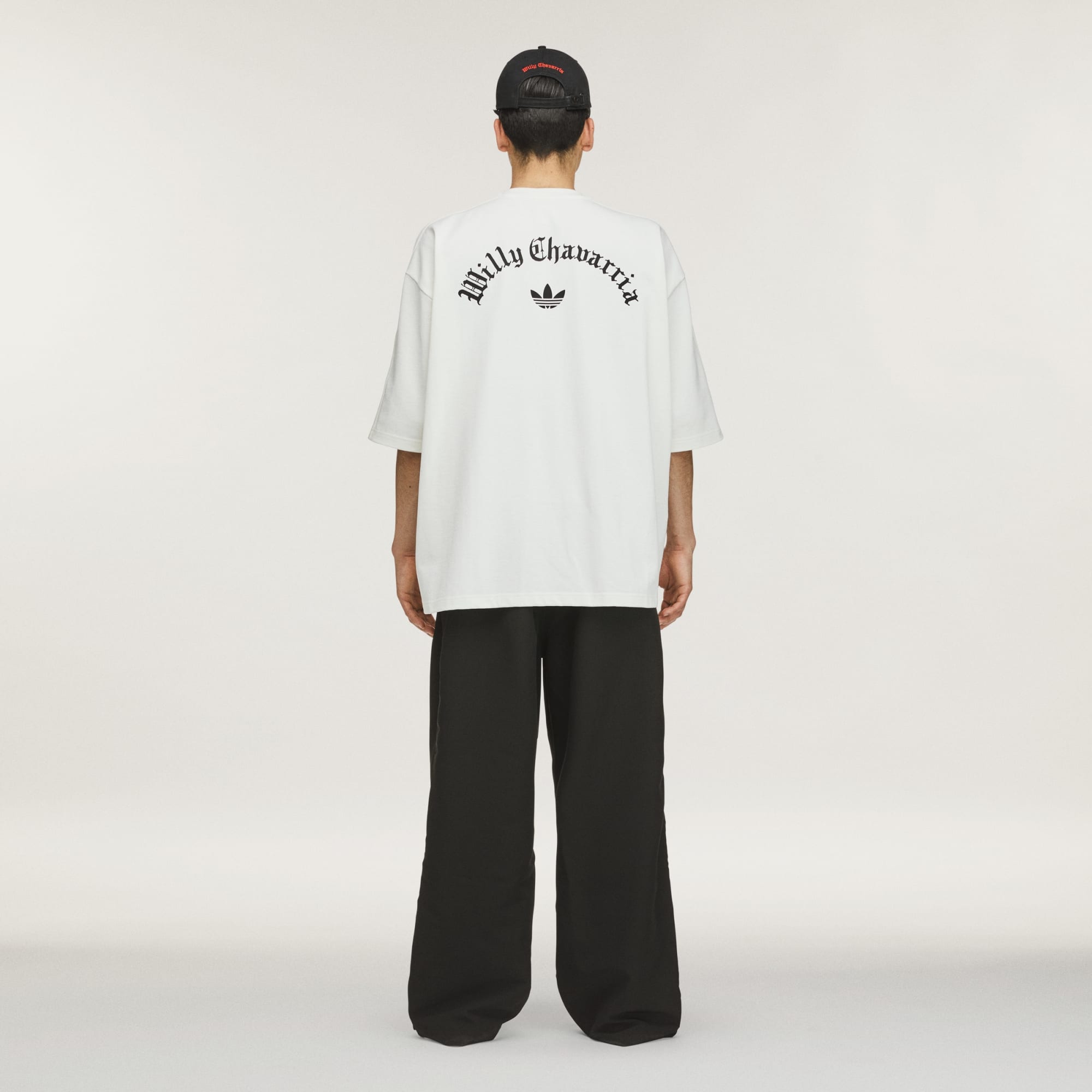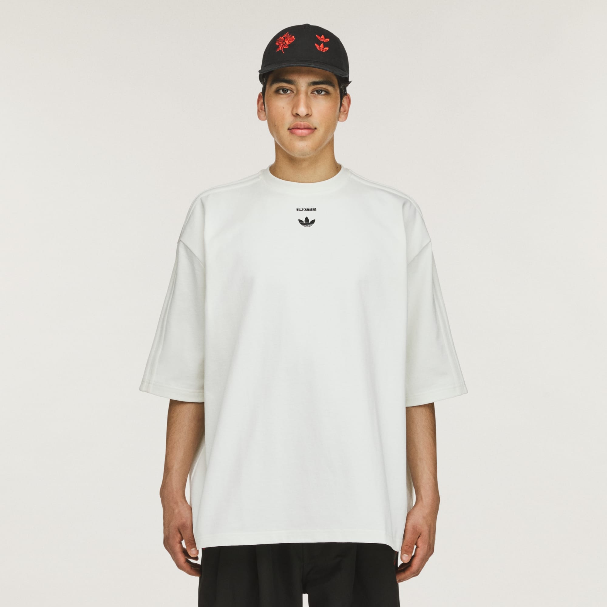 - Branding: Embroidered Willy Chavarria Trefoil, Plastisol matte print Chavarria on front, applied 3-Stripes