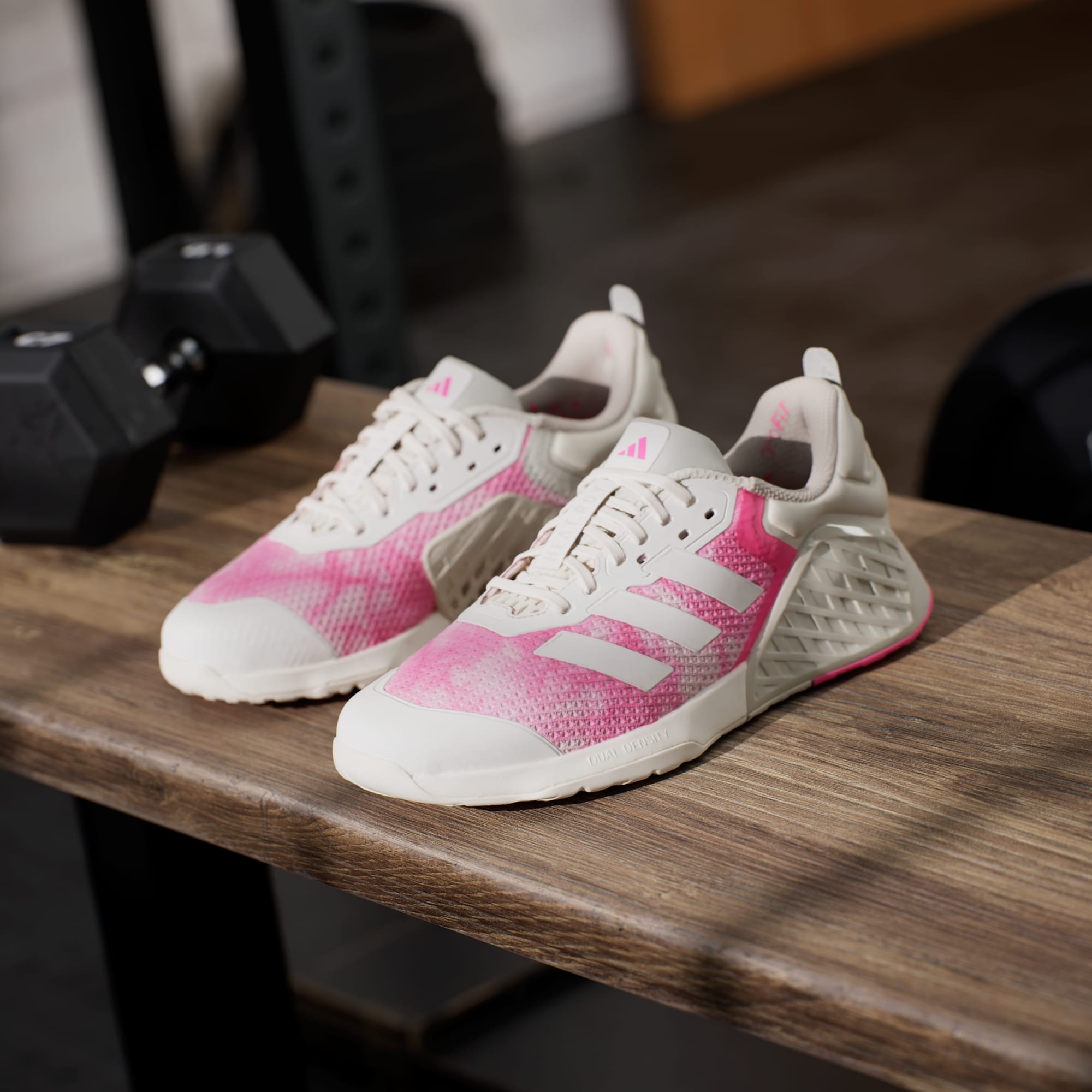 Whether the workout calls for power or endurance, these adidas shoes offer the support you need for strength training. A dual-density midsole keeps feet stable through heavy lifts, while remaining flexible enough for cardio. HEAT.RDY and a breathable upper work overtime to beat the heat, so you can focus on the reps. A wide fit accommodates swelling feet, and an Adiwear outsole grips the floor to drive performance. This product features at least 20% recycled materials. By reusing materials that have already been created, we help to reduce waste and our reliance on finite resources and reduce the footprint of the products we make.