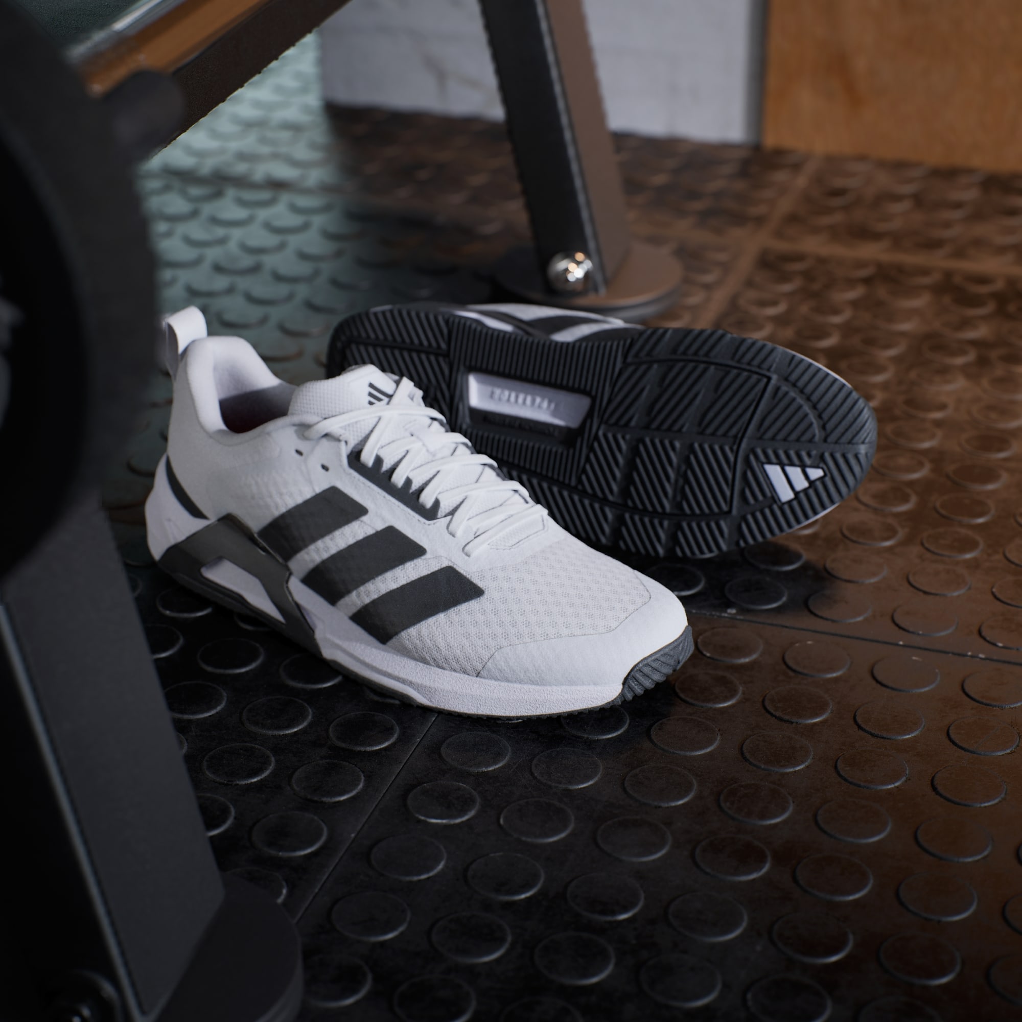 Stable lifting shoes with multidirectional grip.