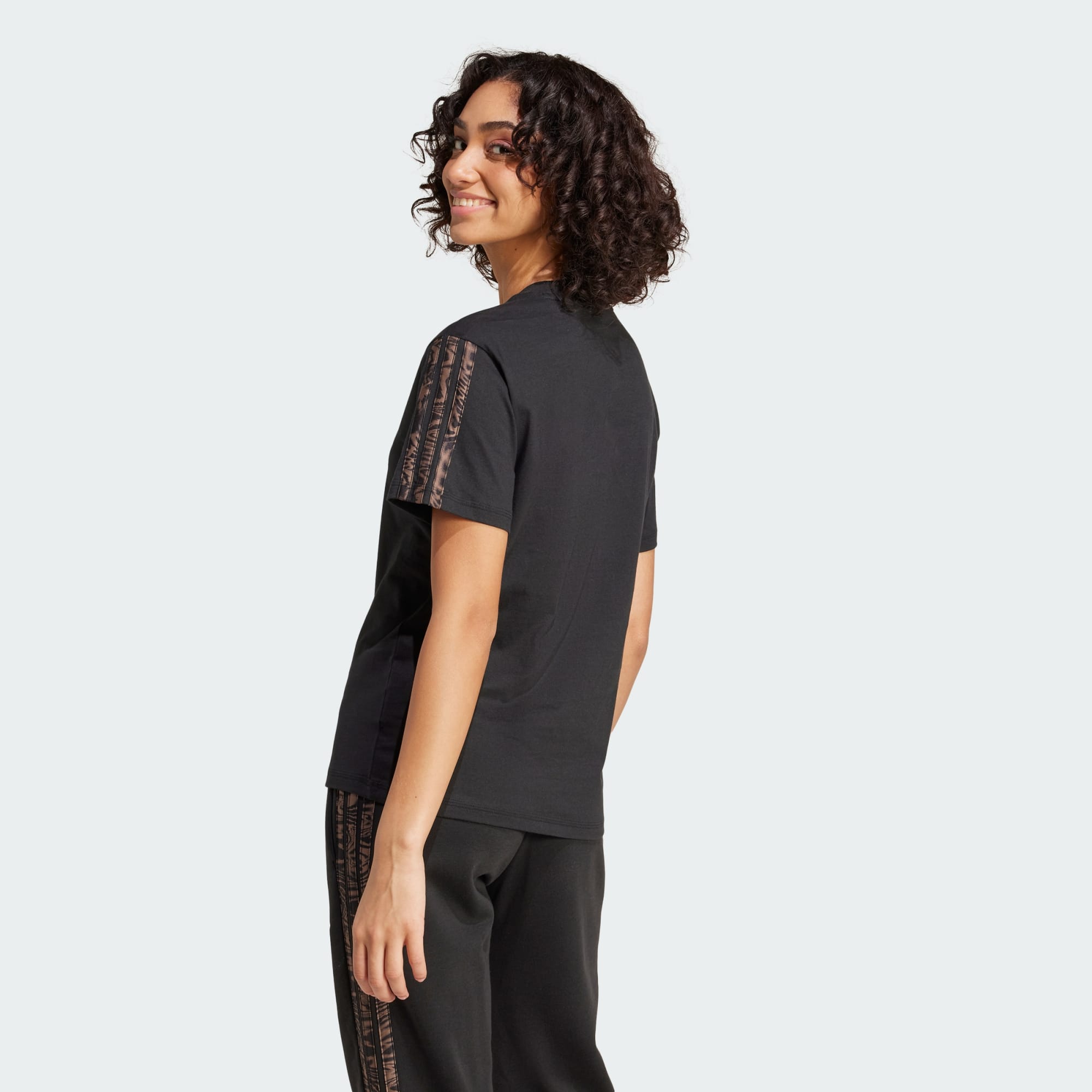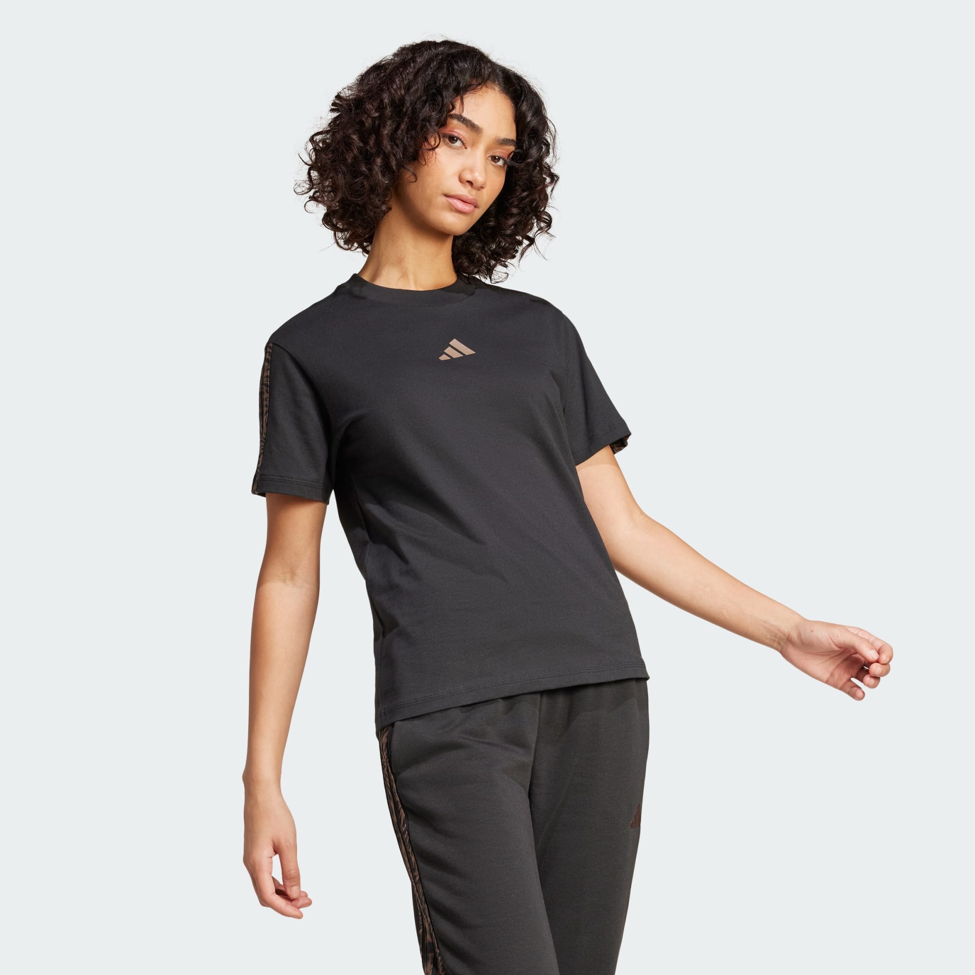This adidas tee lets you show your wild side. The soft fabric keeps you comfortable, while the animal print-inspired 3-Stripes down the sleeves make a statement. Pair this t-shirt with anything from leggings to jeans for easy style that goes wherever you do.