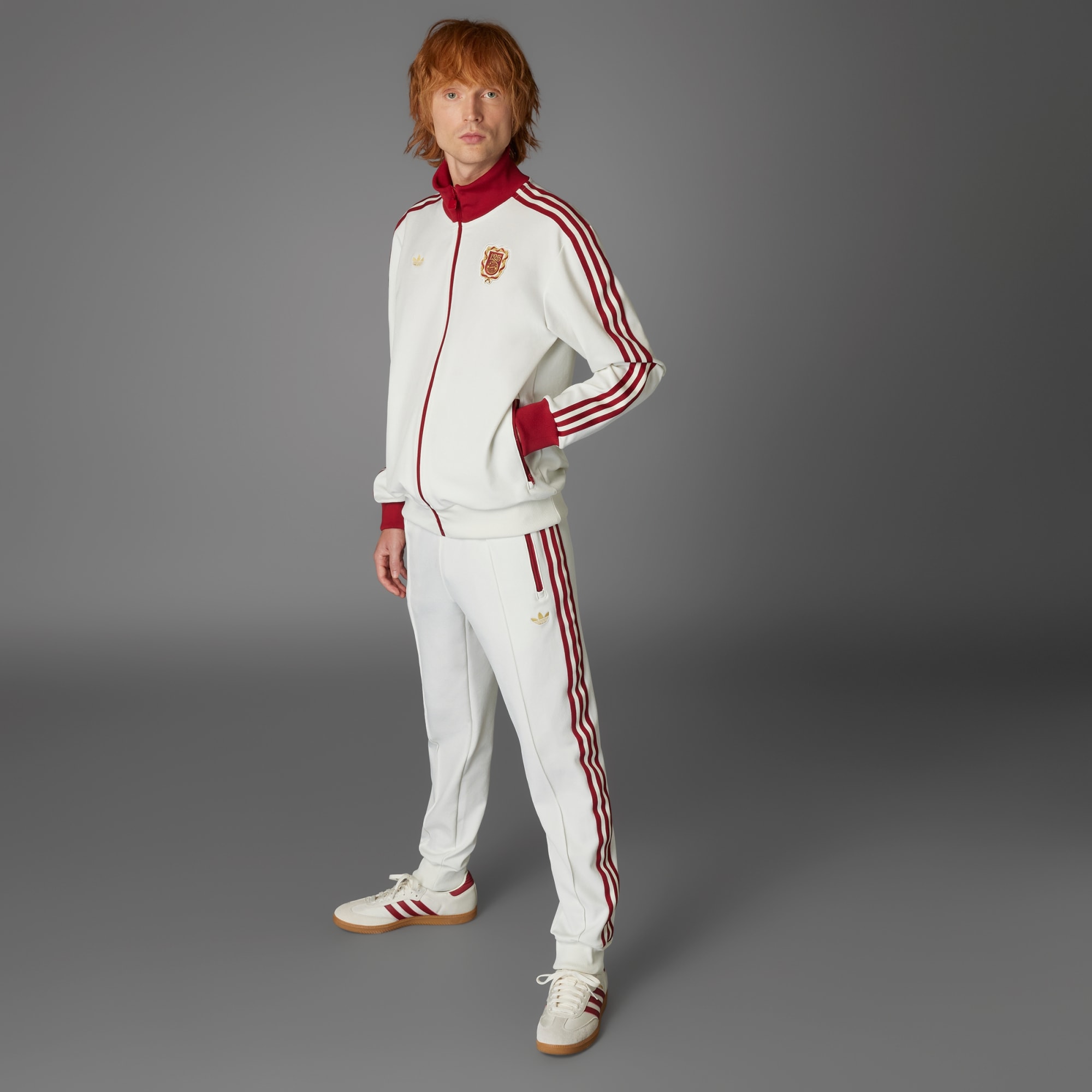 Pay homage to 125 years of football excellence in this FC Bayern track top. Displaying a commemorative badge borrowed from the side's special-edition match jersey, it pairs a classic adidas silhouette with soft twill fabric. Ribbed cuffs and a stand-up collar seal out the cold while you rep Bavaria's finest.