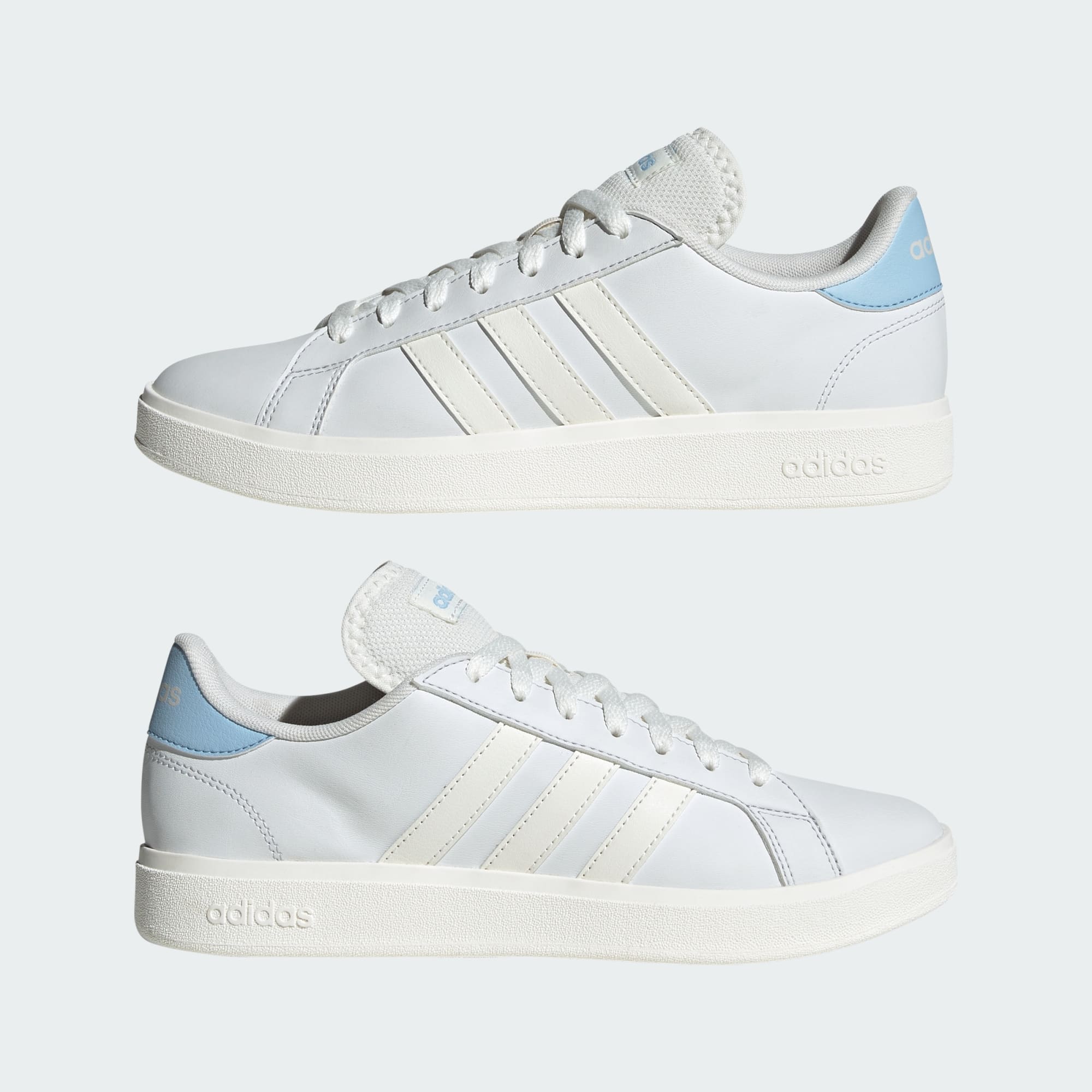 Sneakers with staying power. The adidas Grand Court shoes have been around since the '70s. Once you've upgraded to the revamped version of the classic, they'll never be far from your feet. The 3-Stripes add a sporty spin to any outfit. Made with a series of recycled materials, this upper features at least 50% recycled content.