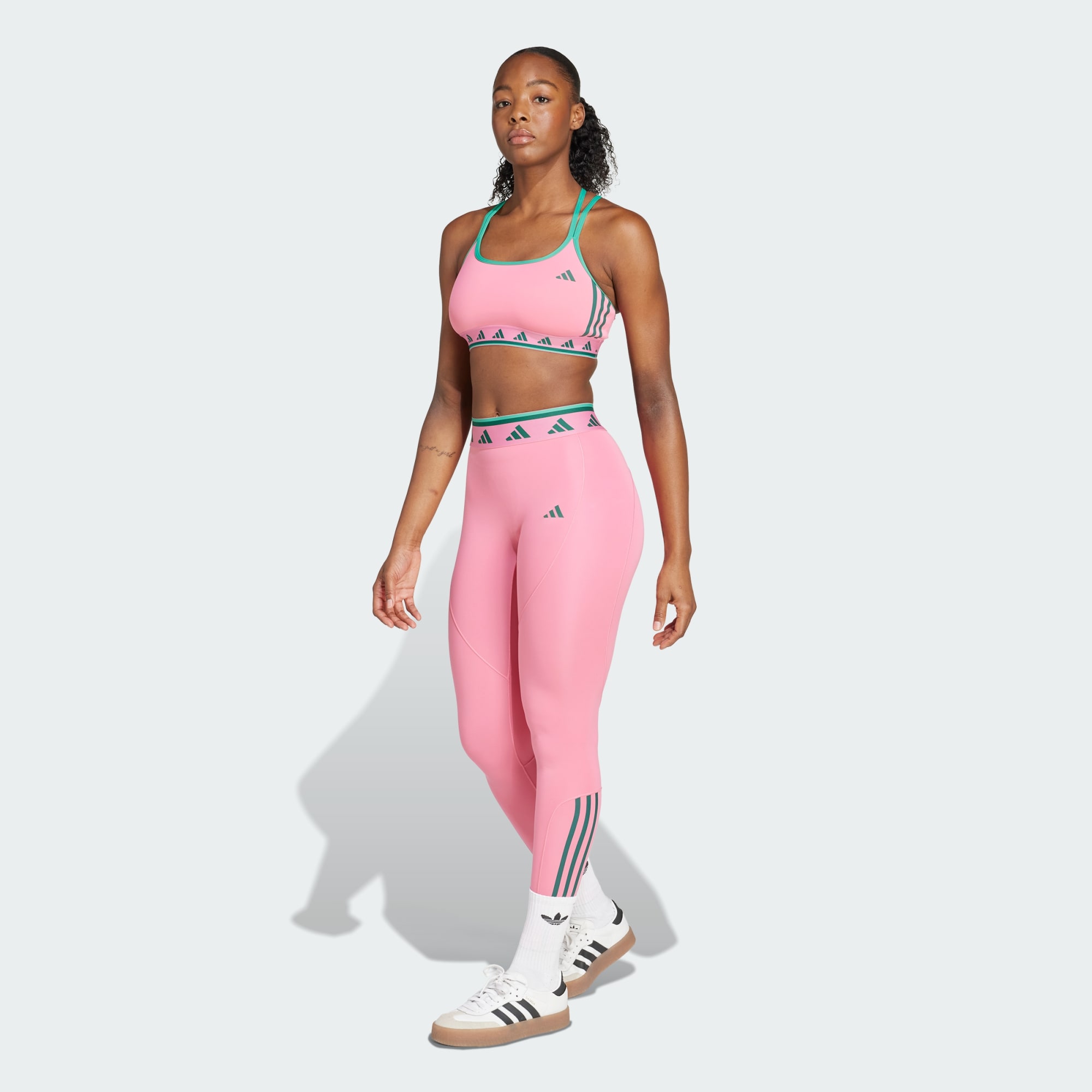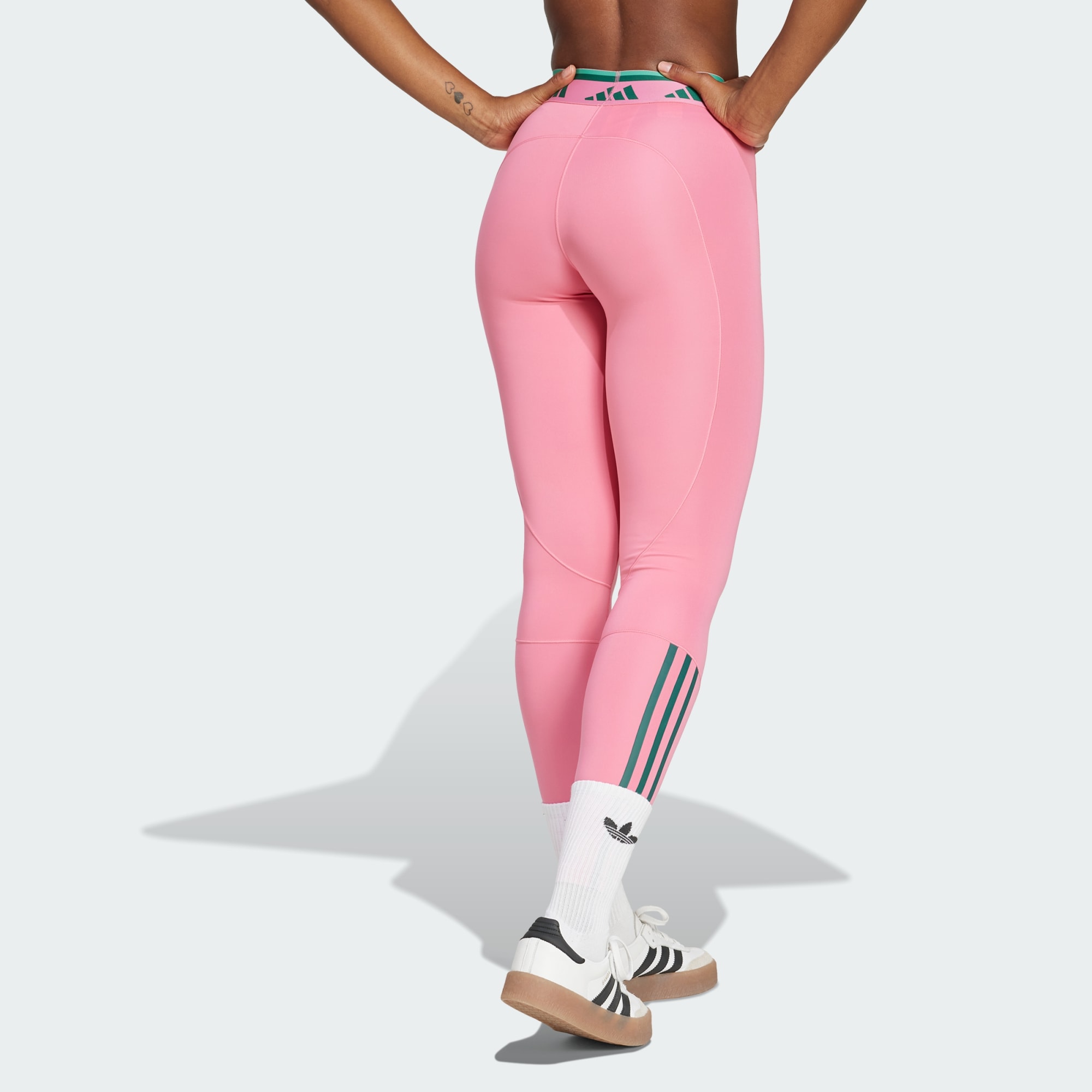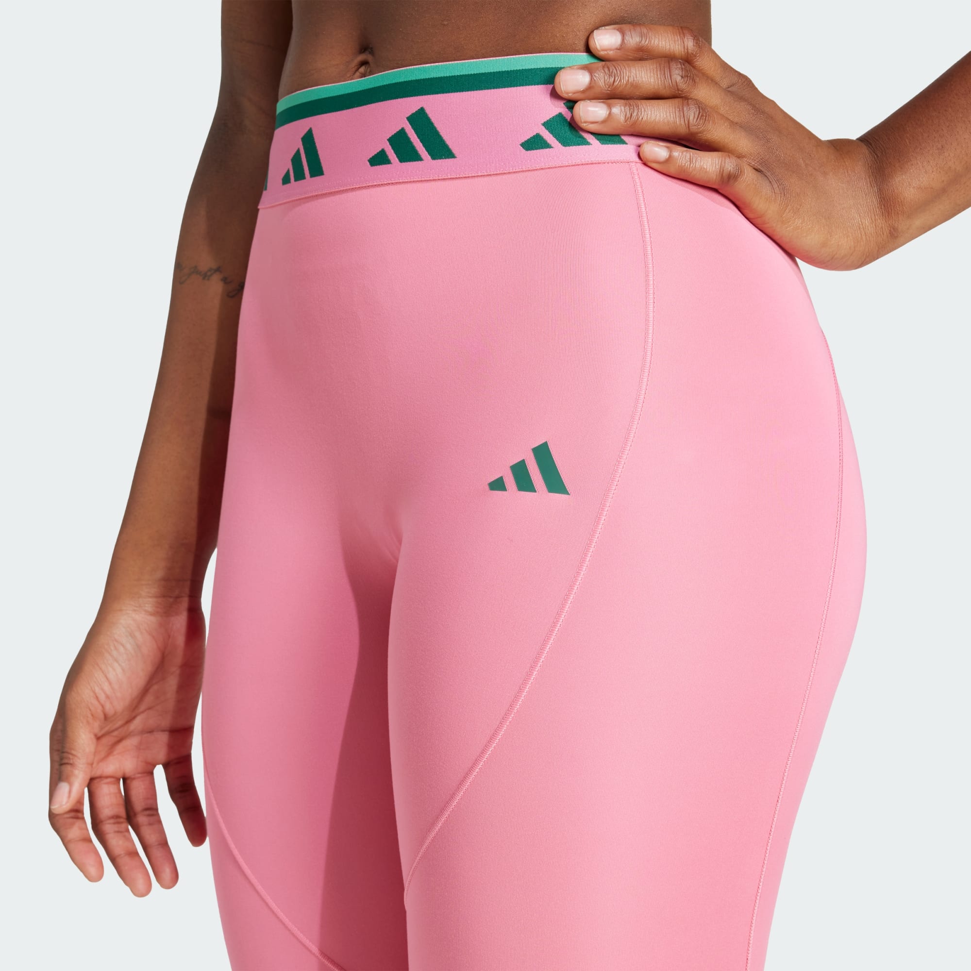 Show off your playful side and make every day more fun in these adidas training leggings. The jacquard elastic waistband with a repeating logo adds a pop of colour. The body-hugging fit, high-rise waist and minimal seaming creates a sleek, flawless look. CLIMACOOL wicks and disperses sweat for cool, dry and distraction-free performance. CLIMACOOL helps you manage sweat with materials that wick and manage sweat quickly. Its fast-dry fibres give you a fresh-skin feel. This product is made with at least 70% recycled materials. By reusing materials that have already been created, we help to reduce waste and our reliance on finite resources and reduce the footprint of the products we make.