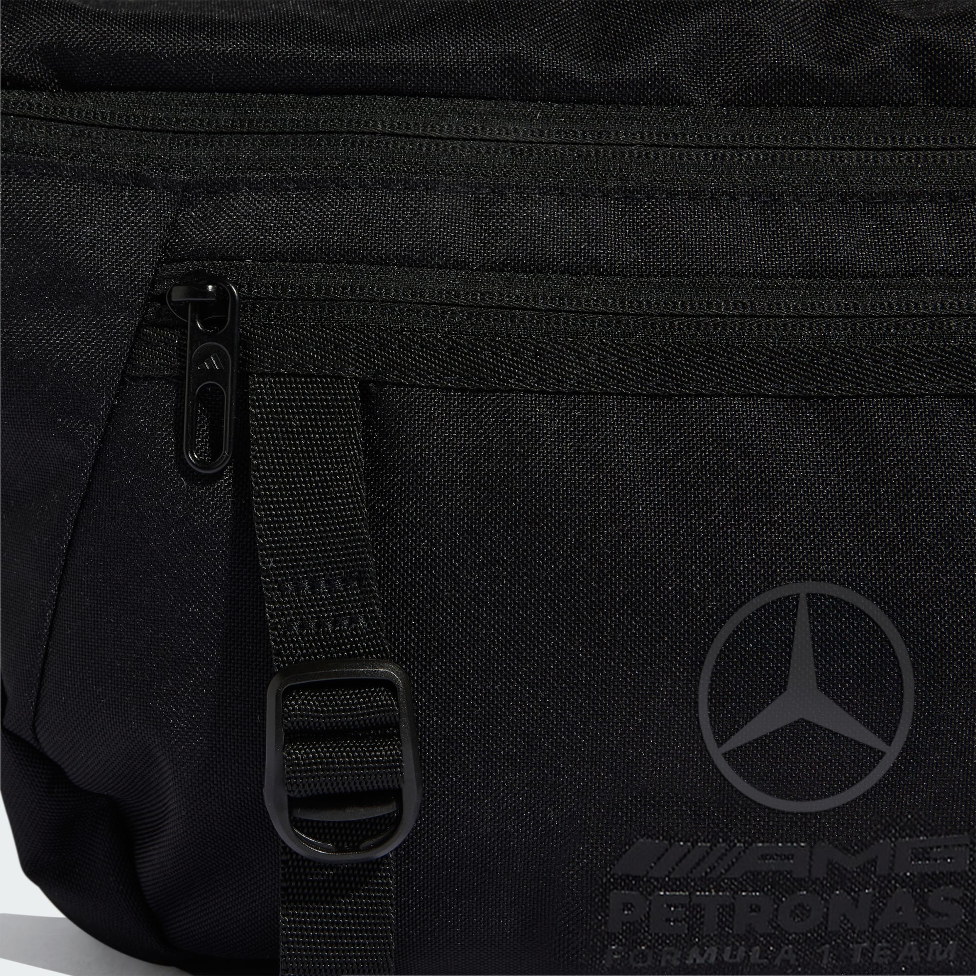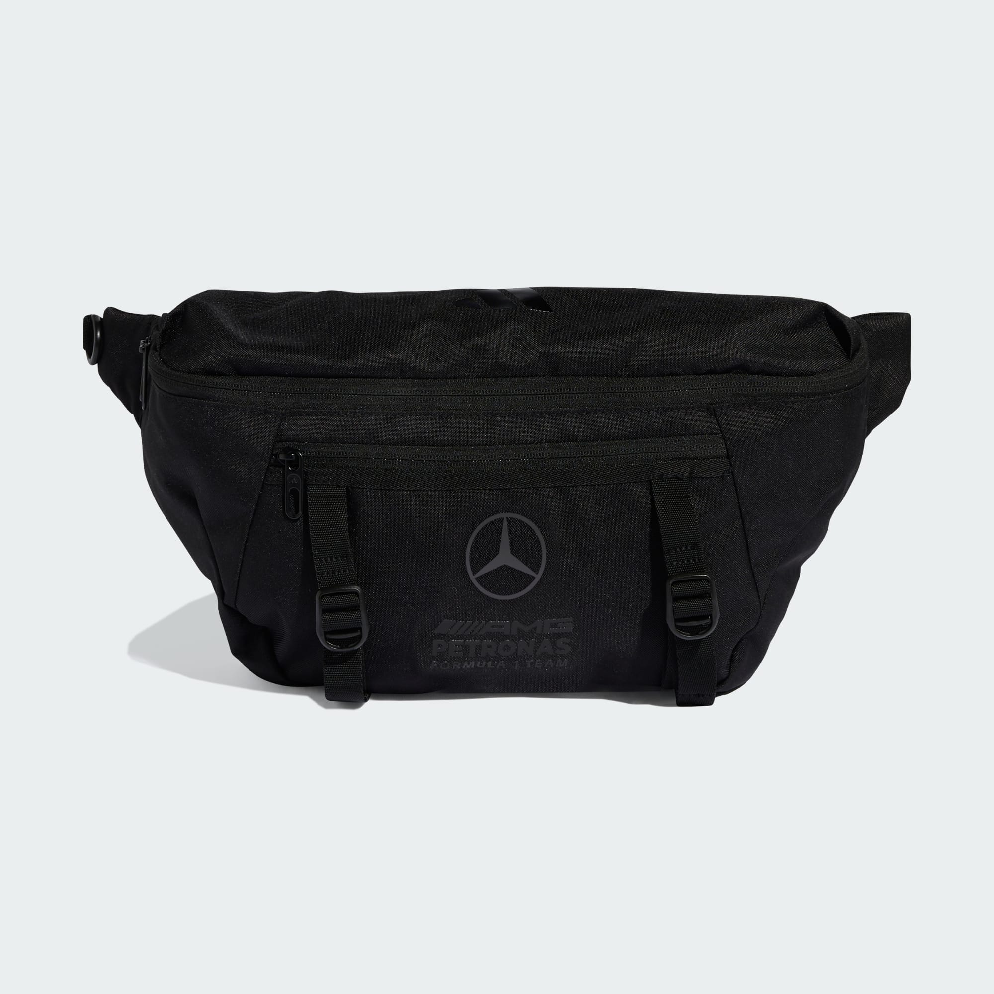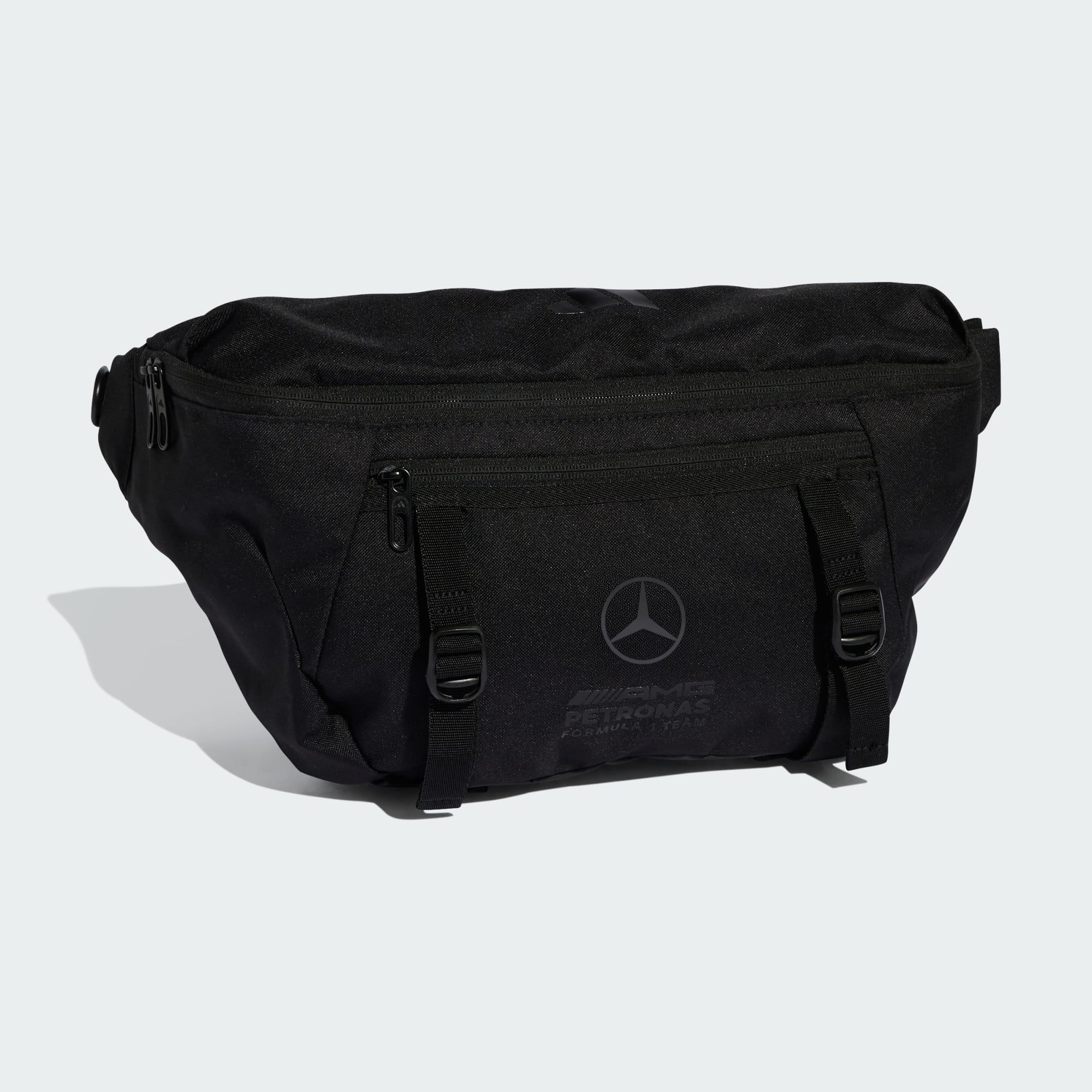 The Mercedes - AMG Petronas Formula 1 Team Lights Out Cross-Body bag is your go-to for style and functionality. Designed as a streetwear-inspired oversized waist bag, it offers multiple pockets for all your essentials. Crafted with a plain weave construction, it offers durability and a sleek look. The adjustable shoulder strap allows for a customised fit, making it comfortable to wear as you carry through the day. The top zip pocket provides easy access to your belongings, while the zip back pocket and side mesh pockets offer additional storage options. With the iconic Mercedes F1 and adidas lock-up logo, this cross-body bag showcases your passion for motorsport and style. Step into the future of fashion with this versatile accessory that complements any outfit.