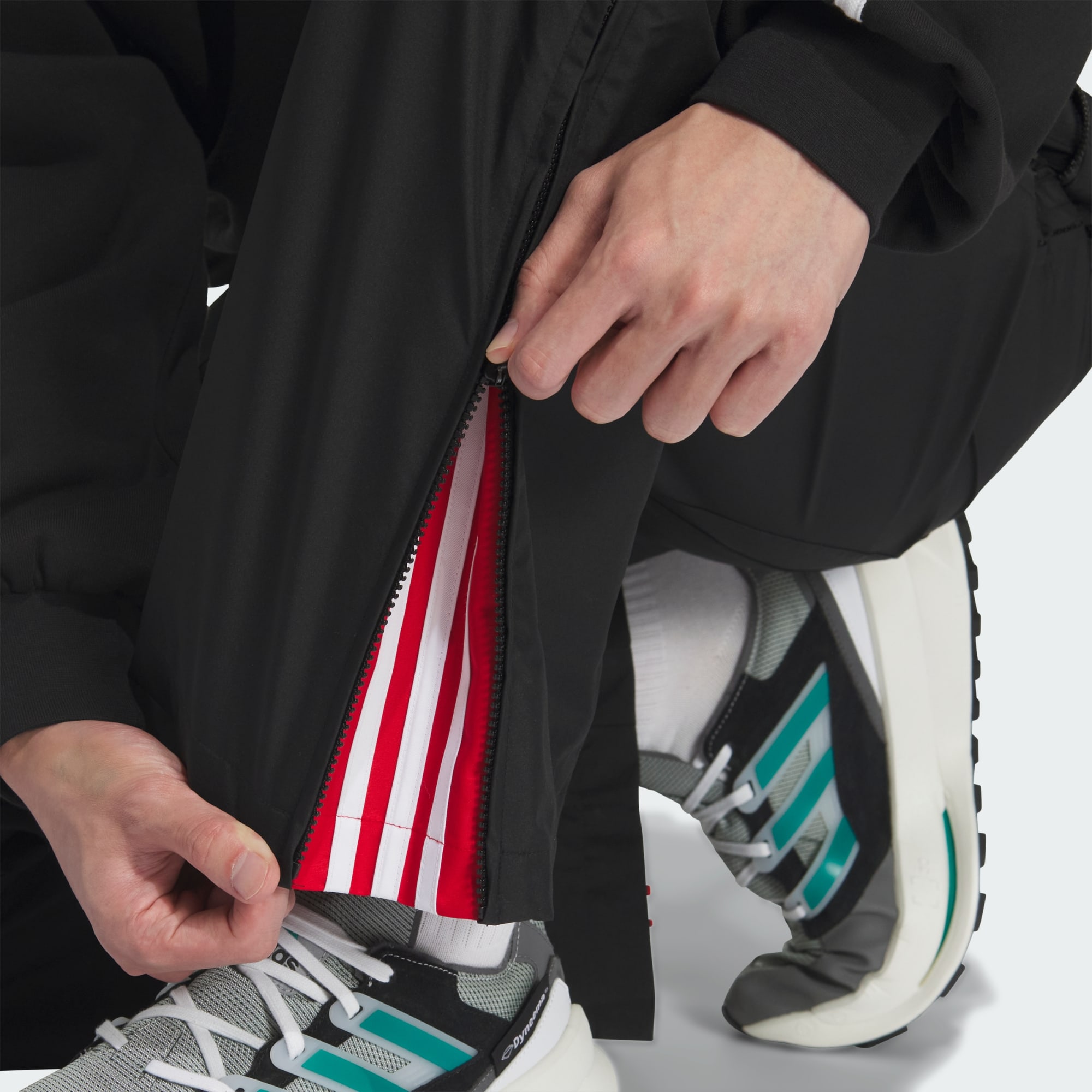 Ordinary people. Extraordinary pants. Made from lightweight woven polyester, these versatile, multi-use pants from adidas Originals have a fit that's the perfect spot between loose and slim. Zippered pockets, a zipper and button closure and belt loops give them standard wearability, while the bungee loops at the lower back legs inject an element of modern sport utility. These pants look good with a hoodie or a woven jacket, but they also play nice with button-down shirts, tees, dressy half-zips and more. This product is made with 100% recycled materials. By reusing materials that have already been created, we help to reduce waste and our reliance on finite resources and reduce the footprint of the products we make.