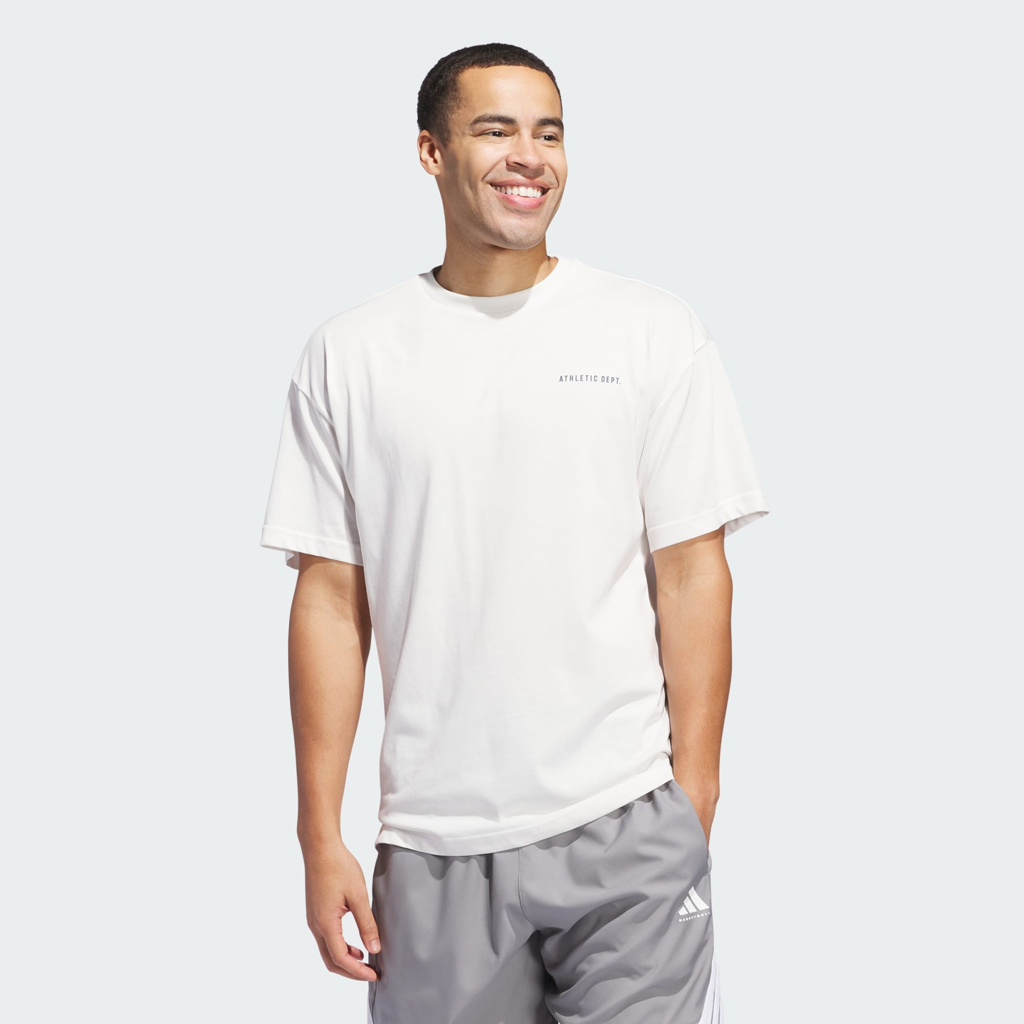 Show your passion for the game of basketball with this adidas graphic tee. The minimalist design on the back displays your love for the sport. Whether you're playing a pickup game or catching some hoops on TV, this shirt lets you rep your favourite sport in comfort and style.