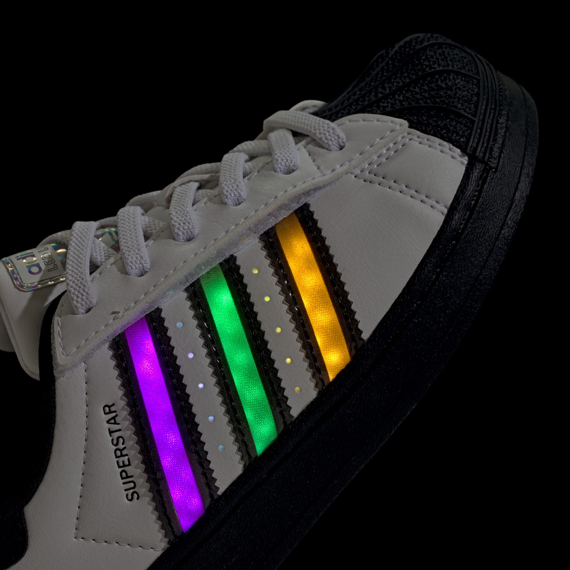 The adidas Superstar shoes made their debut on the basketball courts before dominating the streets for decades. This pair keeps the iconic details that made them a classic, like the rubber shell toe and leather upper. Kids will love the equaliser light effects integrated into the 3-Stripes. Switch between three different effects or turn them on or off with the press of a button on the shoe's lateral side.