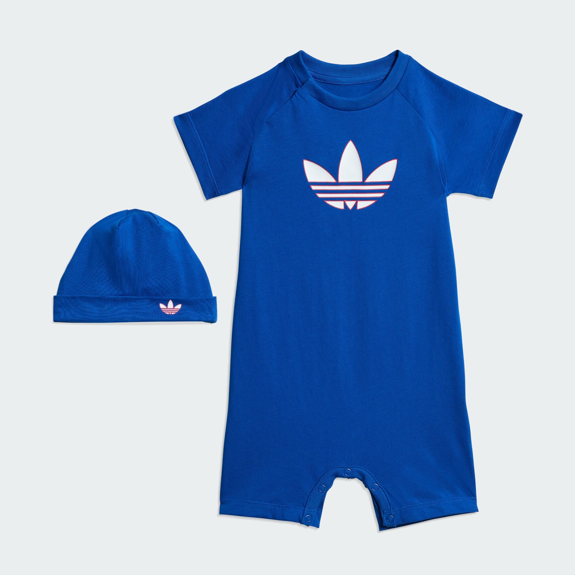 Share comfort and quality with the Trefoil Gift Set Jumpsuit and Beanie, designed with a playful nod to adidas heritage. Part of the ADICOLOR collection—a celebration of adidas heritage with a new level of materials, craftsmanship and design—this set is thoughtfully crafted for comfort and ease. Made from soft single-jersey cotton, the jumpsuit is gentle on delicate skin and offers a loose fit that allows for plenty of natural movement. Practical button closures make dressing simple, and the matching beanie provides warmth with a snug, comfy fit. Whether it's a day at the park or a family gathering, this set is designed to keep little ones looking adorable and feeling comfortable.