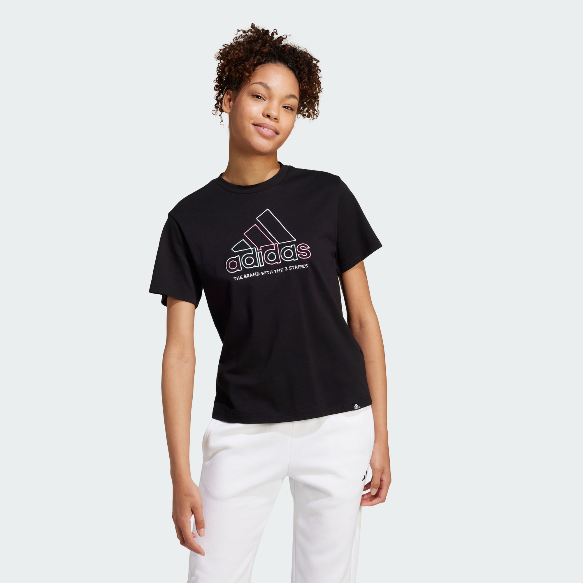 Making an everyday statement is easy in this adidas tee. The soft cotton build keeps you comfortable whether running errands or meeting friends for coffee. Front and centre, the colourful logo announces your style affiliation loud and proud. For a laid-back athletic vibe, pair it with joggers and sneakers. To elevate the look, team it with distressed jeans and booties. However you wear it, this tee lets you express yourself in comfort and style.