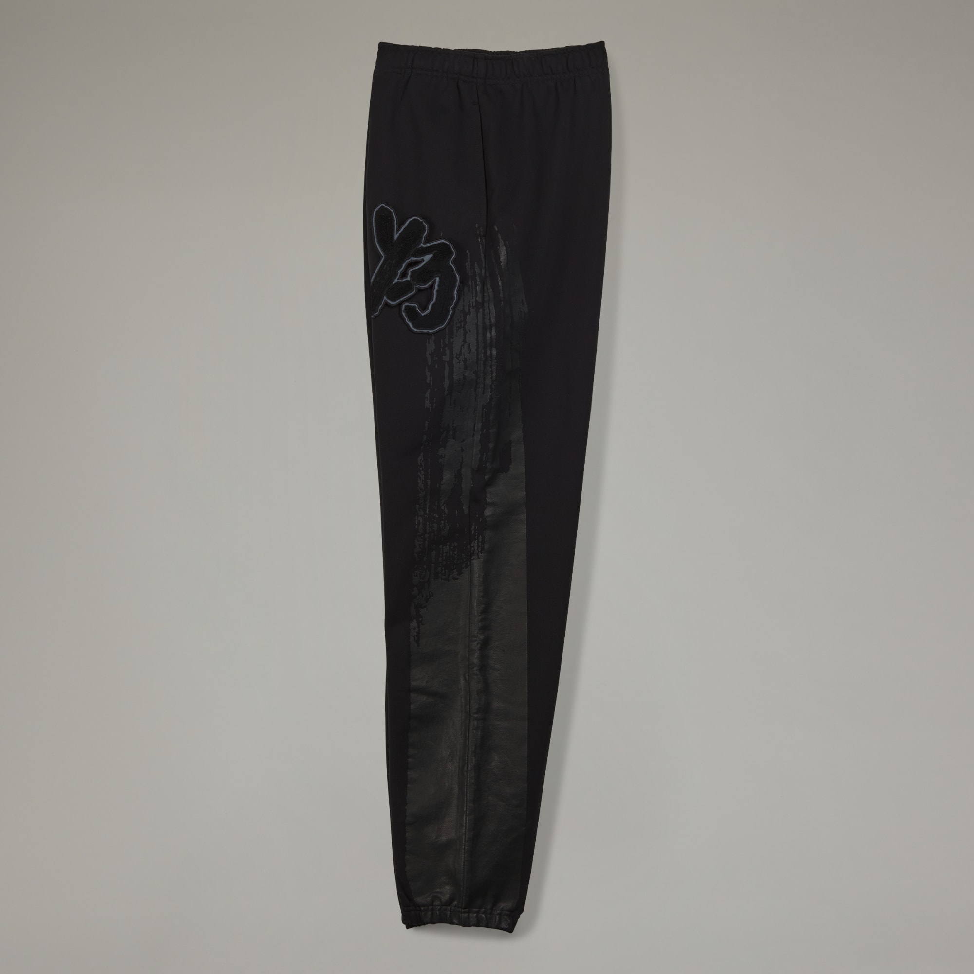Y-3 pants with an oversized brushstroke graphic.