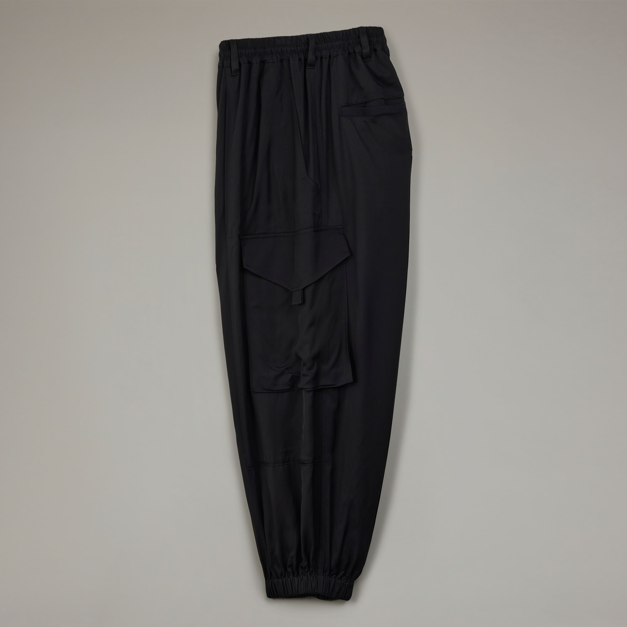 The Y-3 Rayon Twill Pants are an elevated take on classic cargo pants. The rayon twill fabric is cut for an elegant drape and a loose fit. The zippered fly with a snap-button closure and an elasticised waistband with an integrated tie cord keeps everything snug. Flap cargo pockets on the side add to the silhouette. A satin Y-3 logo completes the iconic style.
