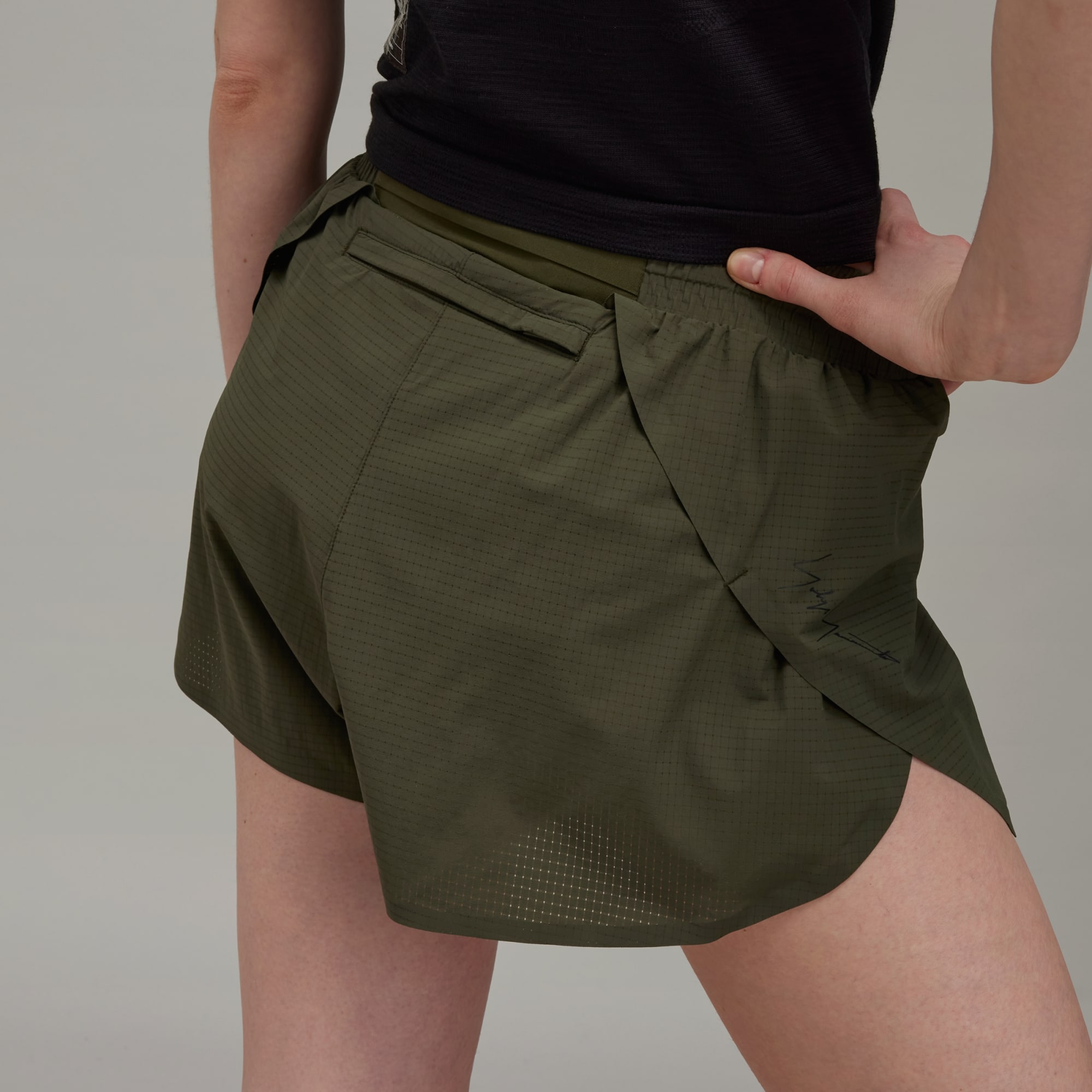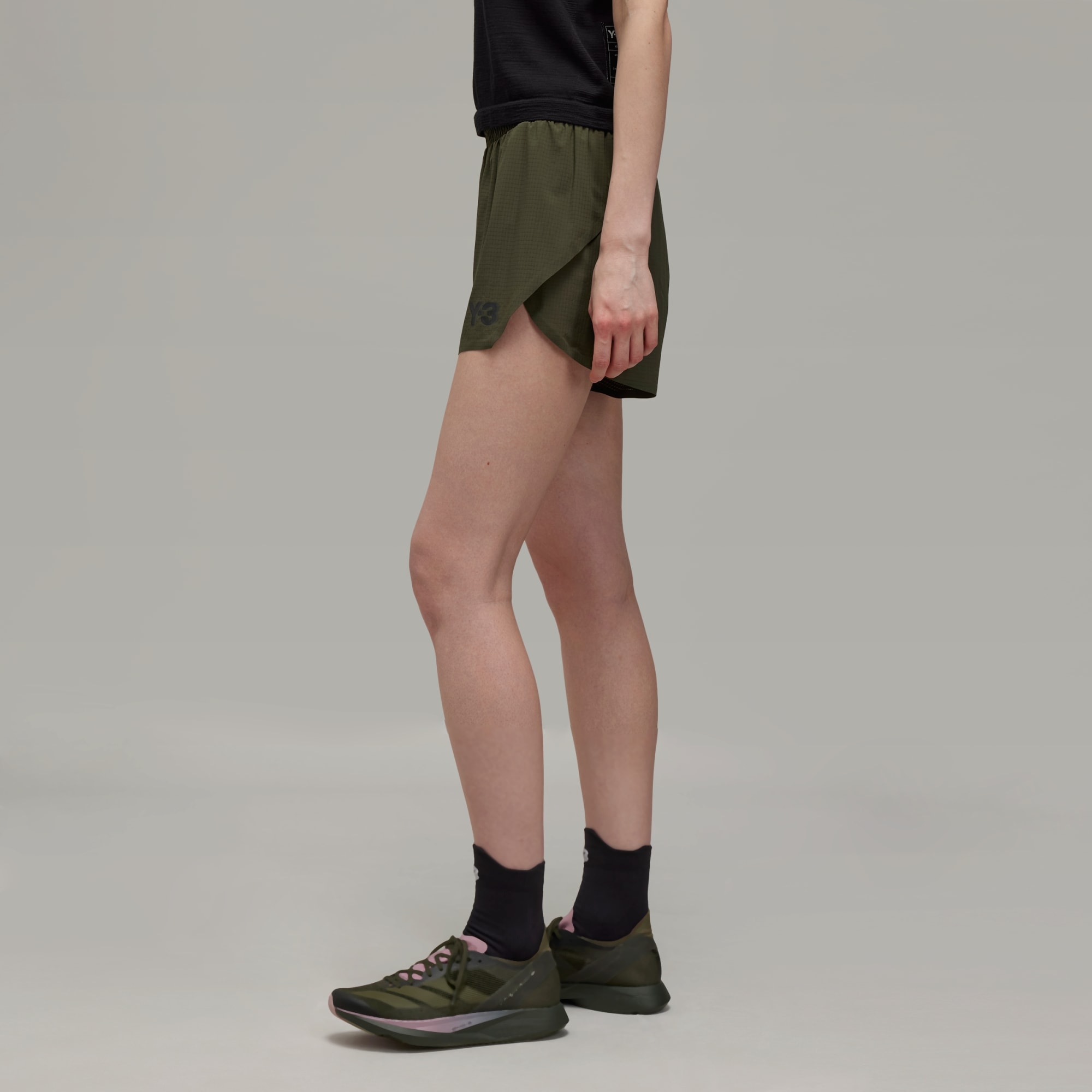 Y-3 running shorts that manage moisture, made in part with recycled materials.
