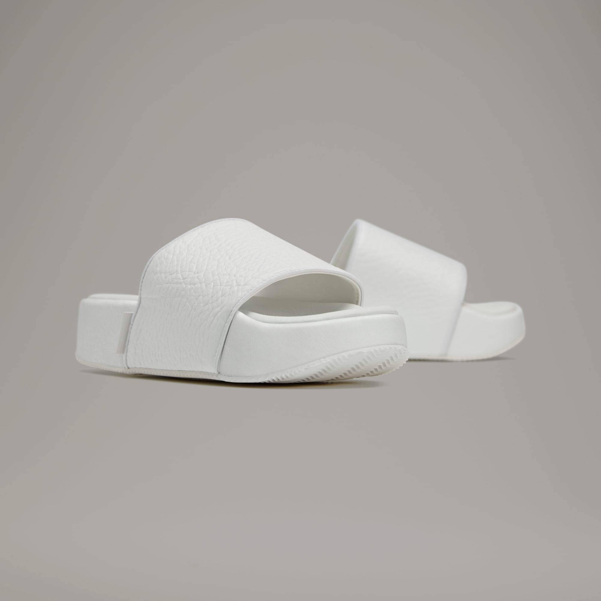 "Y-3 is a strong examination of the blend of sport and style and the tension caused by mixing tradition with all that is modern." — Yohji Yamamoto Y-3 adds dramatics to a celebrated adidas style with an exaggerated silhouette. The Y-3 Slides have a bulky, statement design crafted with a heavy tumbled leather upper. They offer enhanced cushioning for unparalleled comfort.