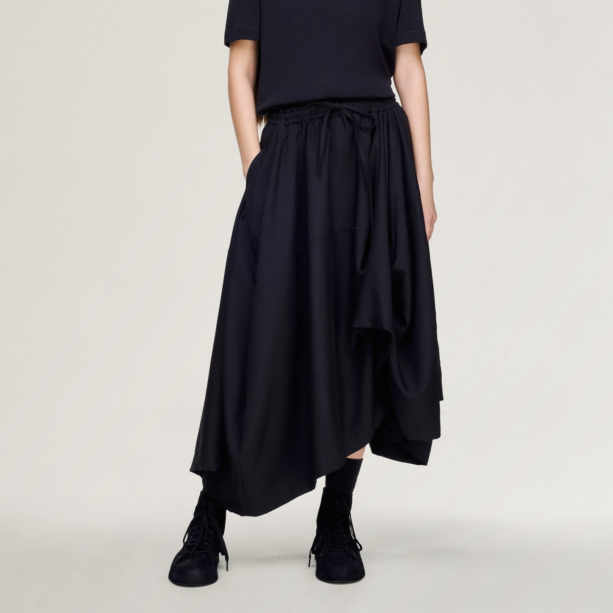 Y-3 sport uniform skirt with asymmetrical cut for visual impact.